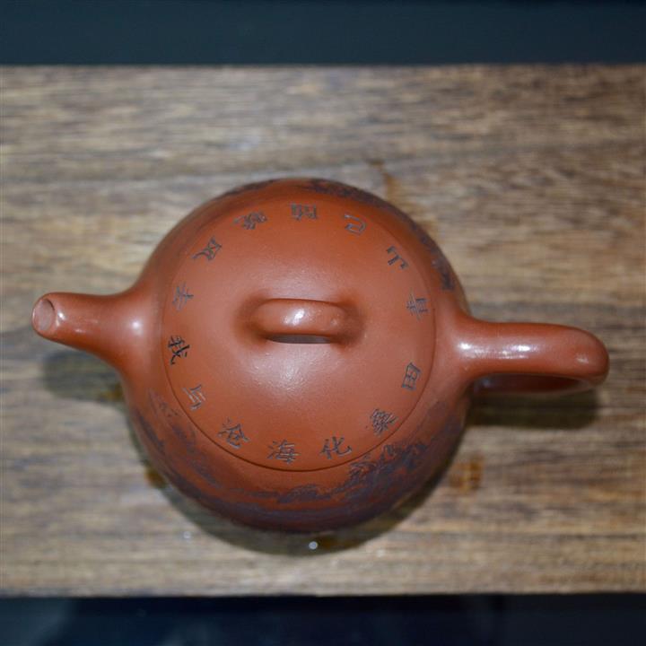 320cc原礦紅皮龍刻繪山水秦權泡茶壺POT8411