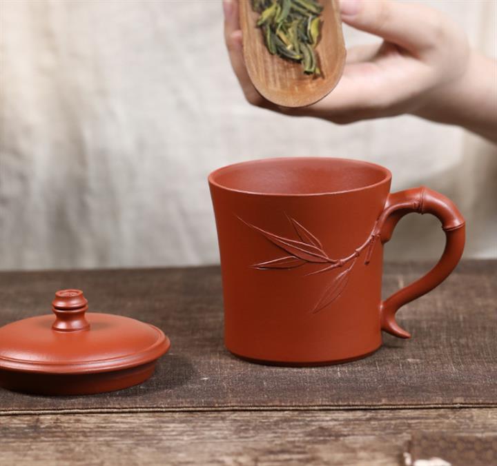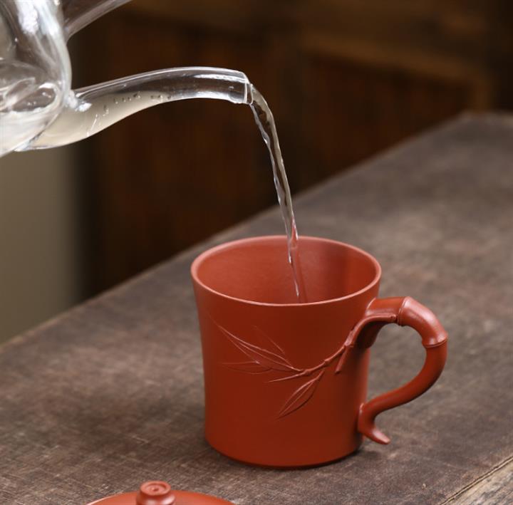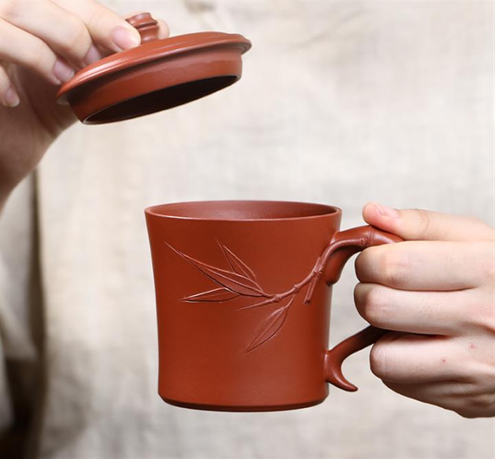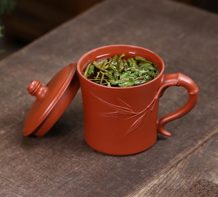 255cc原礦朱泥女士竹節蓋杯POT8461