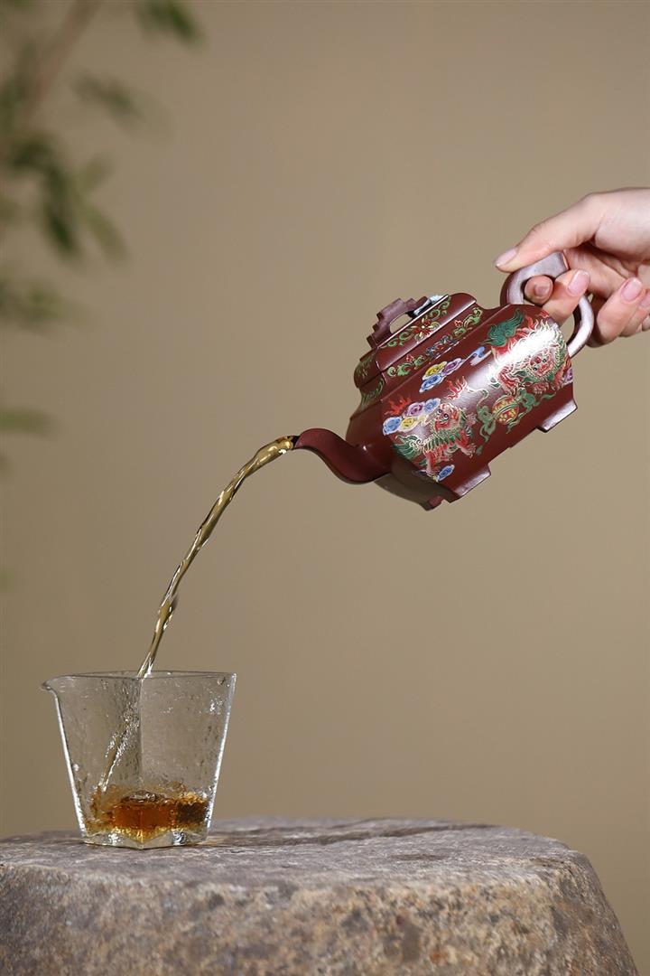 原礦紅皮龍孔雀頌金茶壺POT7137