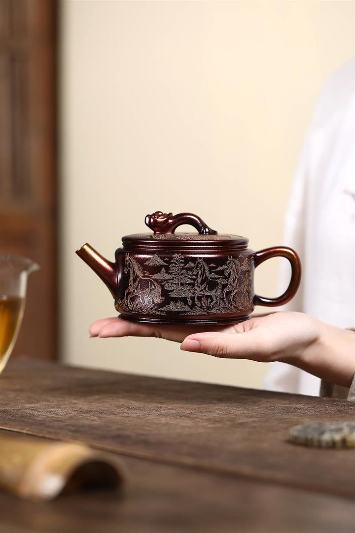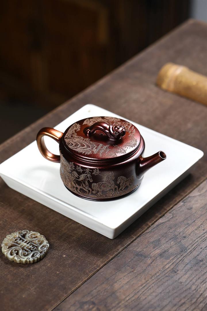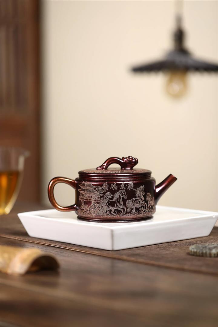 330cc原礦貝殼燒馬到成功如意漢瓦茶壺POT8489
