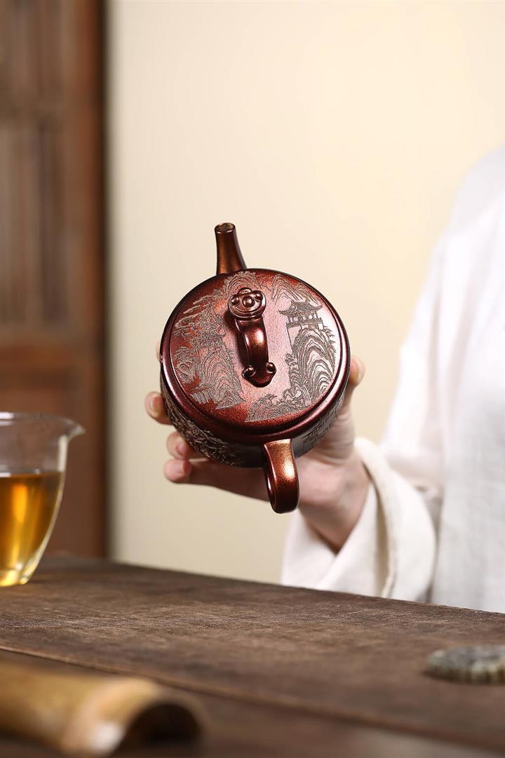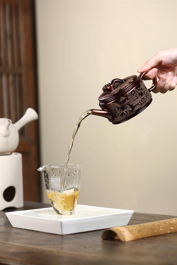 【作品介紹】此款壺形線條流暢,壺把,壺嘴,壺身壹氣呵成栩栩如生,是收藏把玩的好壺,泥料色澤古樸典雅,日久使用,漸露鋒芒,養成變化快,溫潤莊重,用其泡茶,使用的年代久,壺身就溫潤,泡出來的茶湯也就醇郁芳馨。