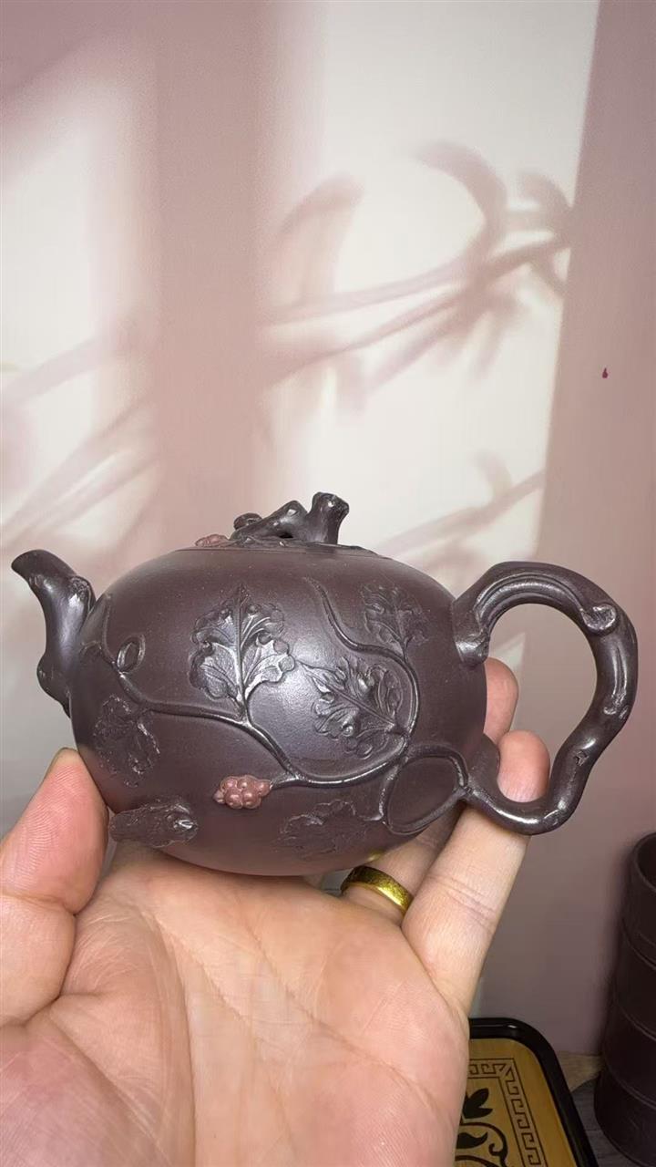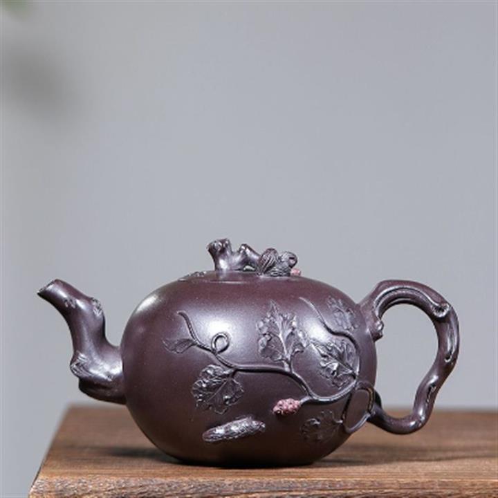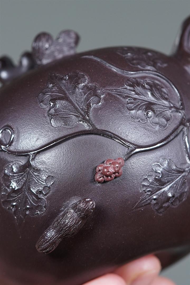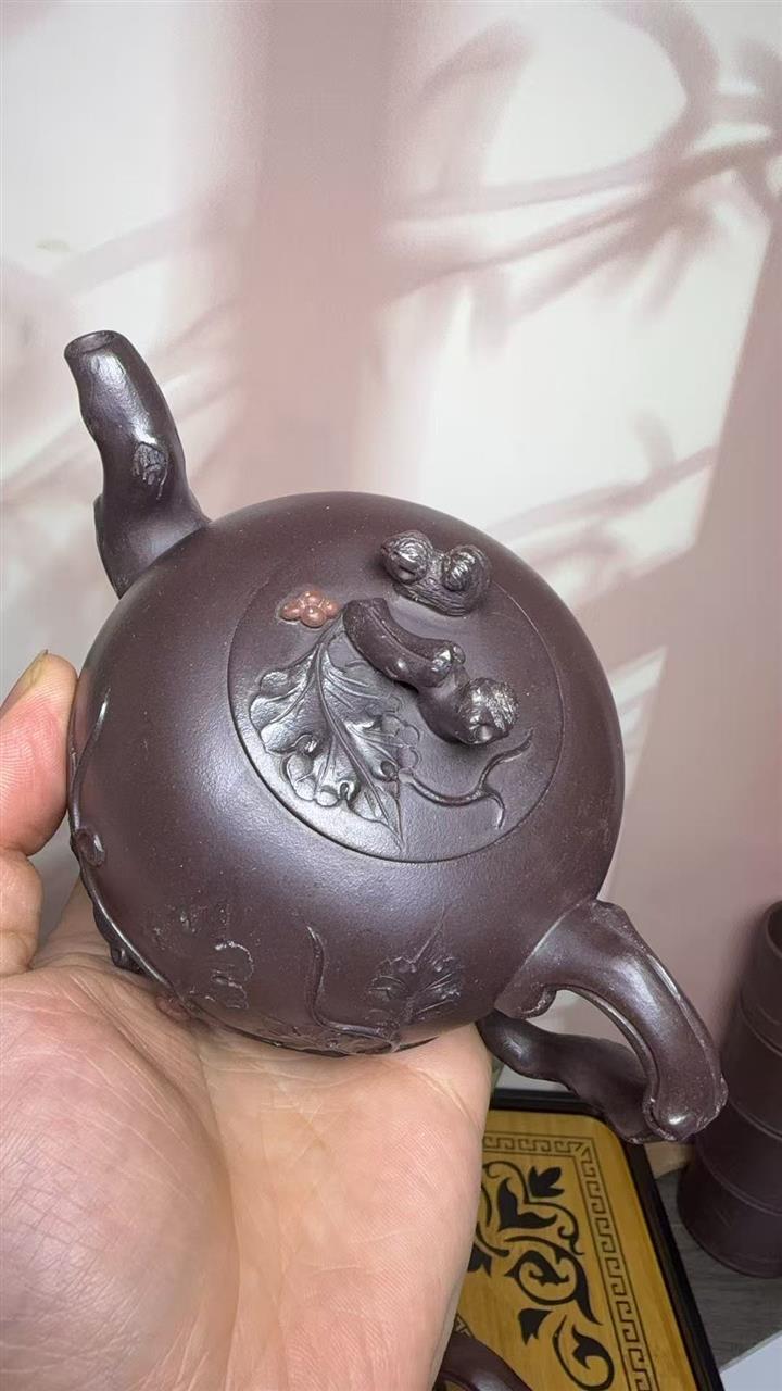 240cc原礦老紫泥松鼠葡萄茶壺POT8541