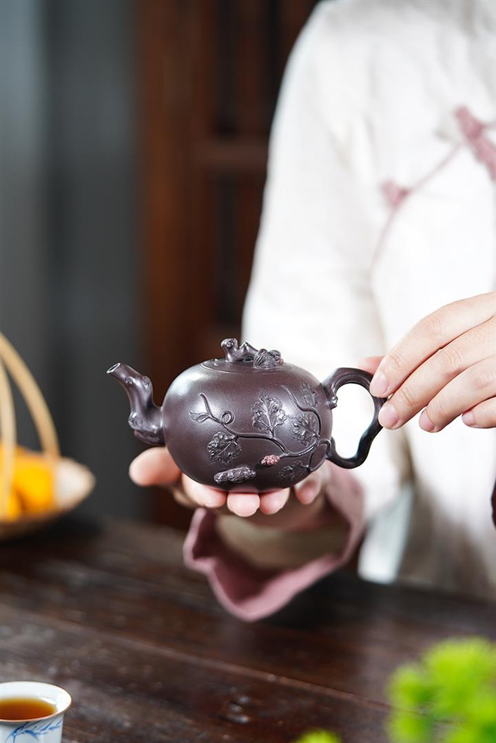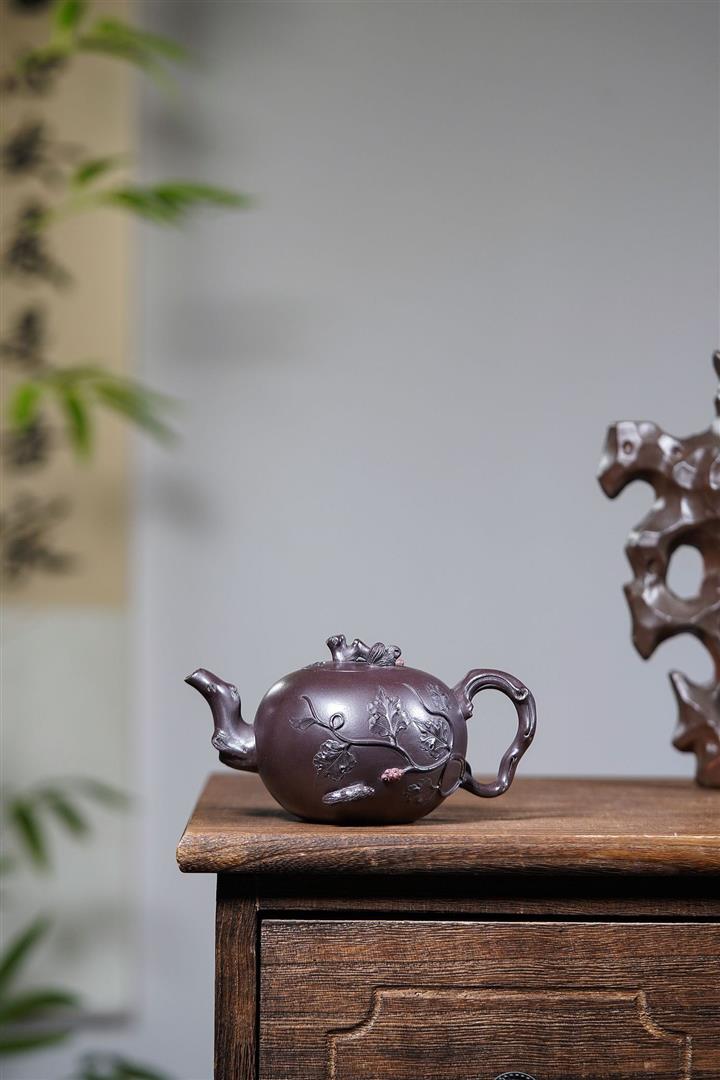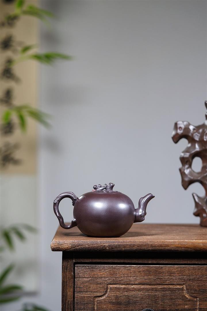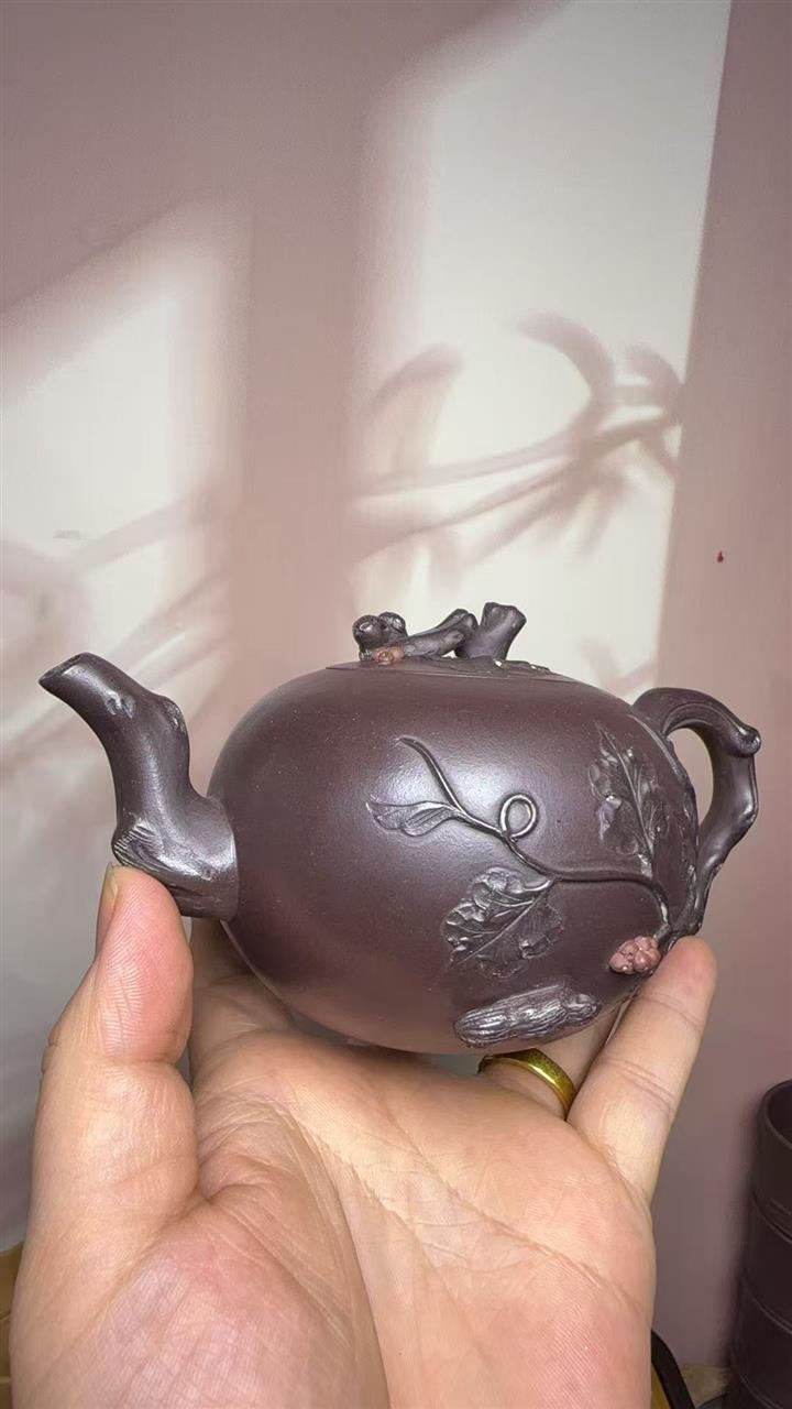 240cc原礦老紫泥松鼠葡萄茶壺POT8541