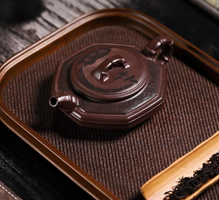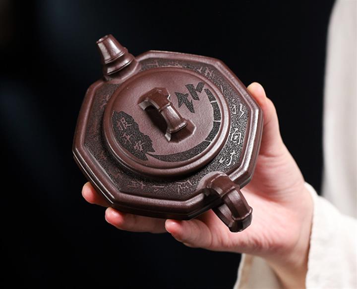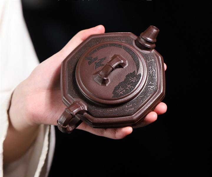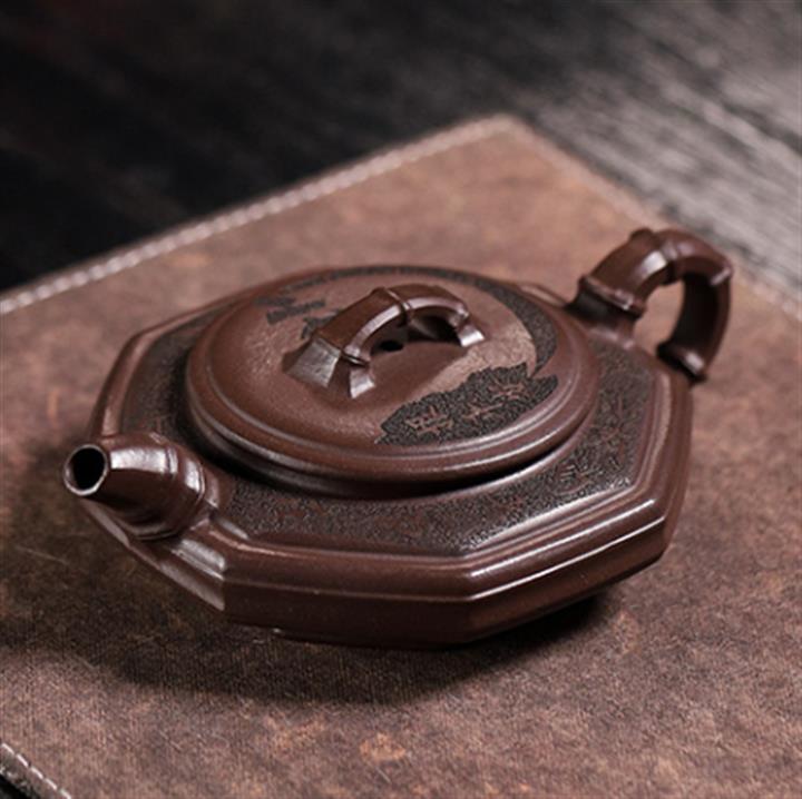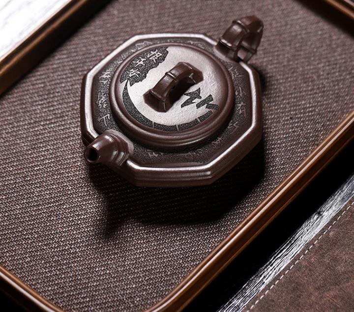 170cc原礦老紫泥竹報平安包漿茶壺POT8544