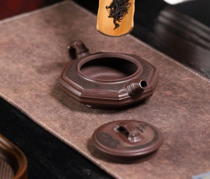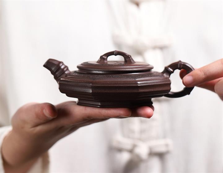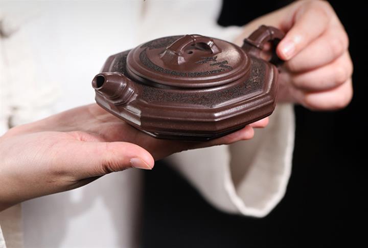 【泥料特點】砂土氣重,似淳實農民,日久使用,漸露鋒芒,養成變化,溫潤莊重。紫砂是壹種雙重氣孔結構的多孔性材質,氣孔微細,密度高。用紫砂壺沏茶,不失原味,且香不渙散,得茶之真香真味。紫砂使用越久,壺身色澤越發光亮照人,氣韻溫雅。紫砂壺長久使用器身會因撫摸擦拭,變得越發溫潤光澤。