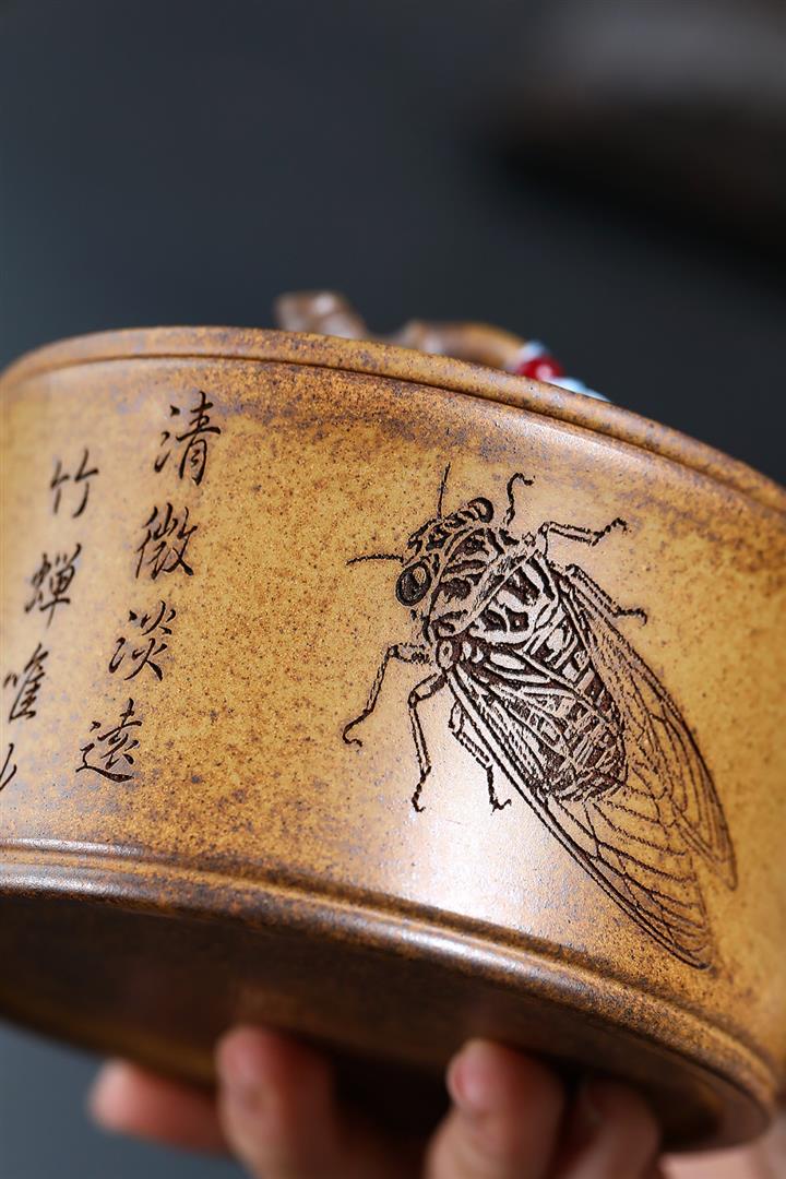 原礦天青泥金玉滿堂紫砂壺POT4387