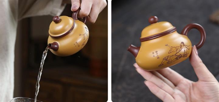 【作品介紹】此款壺形線條流暢,壺把,壺嘴,壺身壹氣呵成栩栩如生,是收藏把玩的好壺,泥料色澤古樸典雅,日久使用,漸露鋒芒,養成變化快,溫潤莊重,用其泡茶,使用的年代久,壺身就溫潤,泡出來的茶湯也就醇郁芳馨。