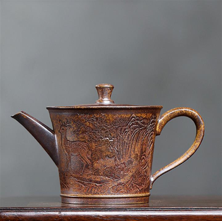 500cc原礦龍骨金砂高溫柴燒方寸書香泡茶壺POT8336