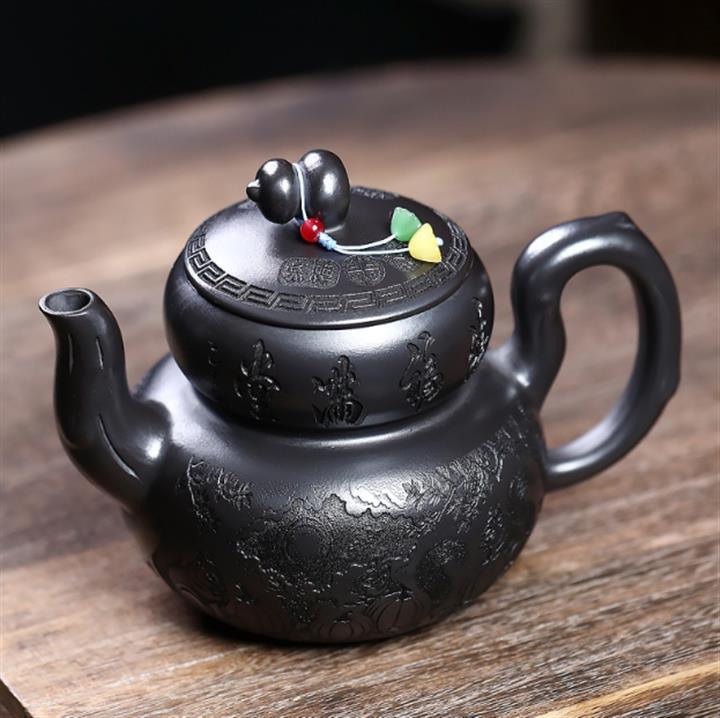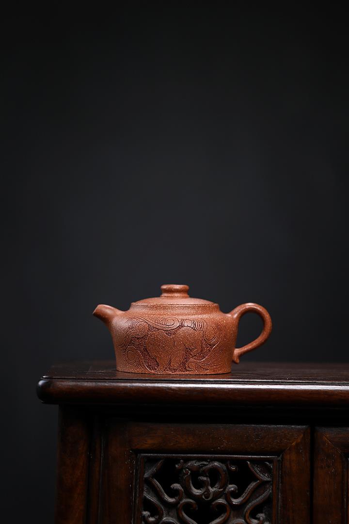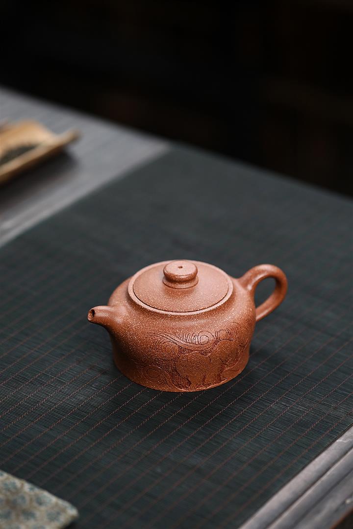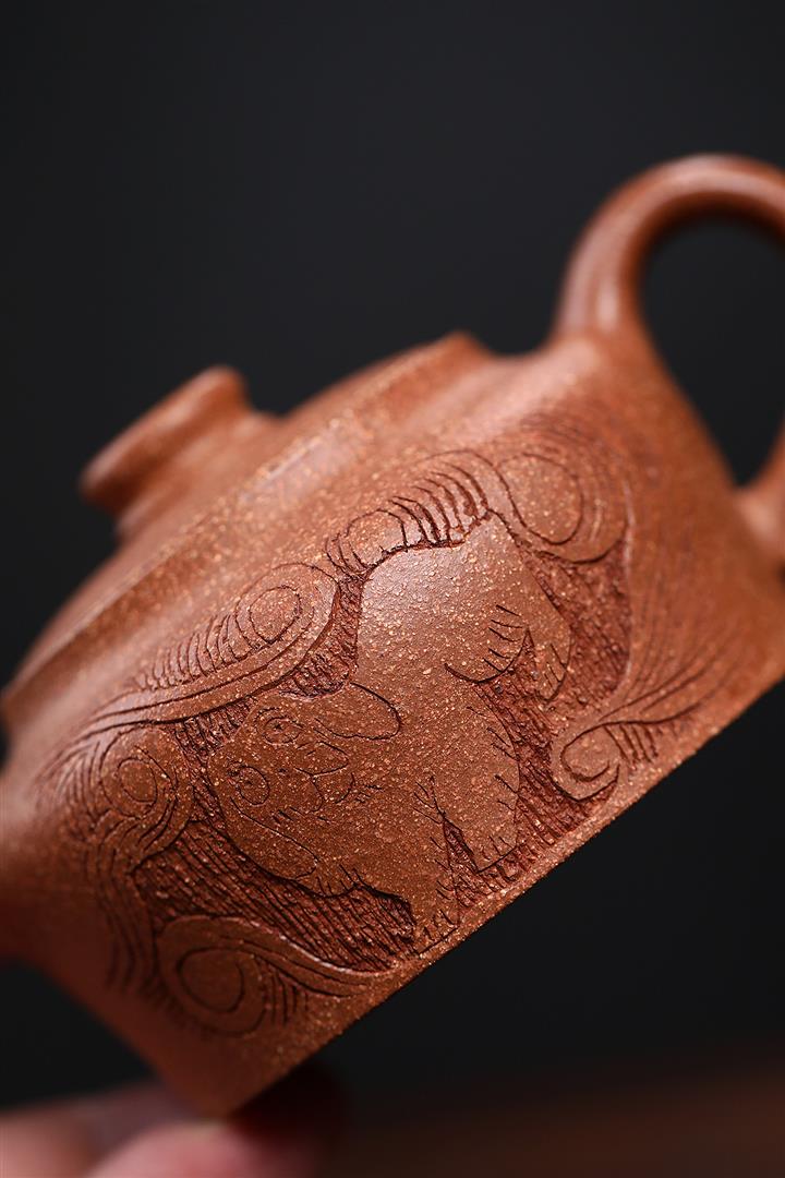 570cc原礦石黃泥滿刻鴻福滿堂茶壺POT8060
