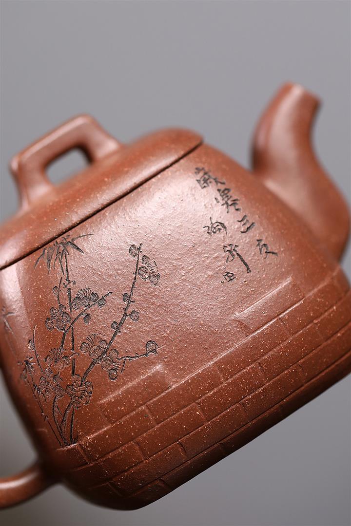 200cc原礦降坡泥方器刻繪茶壺POT8598