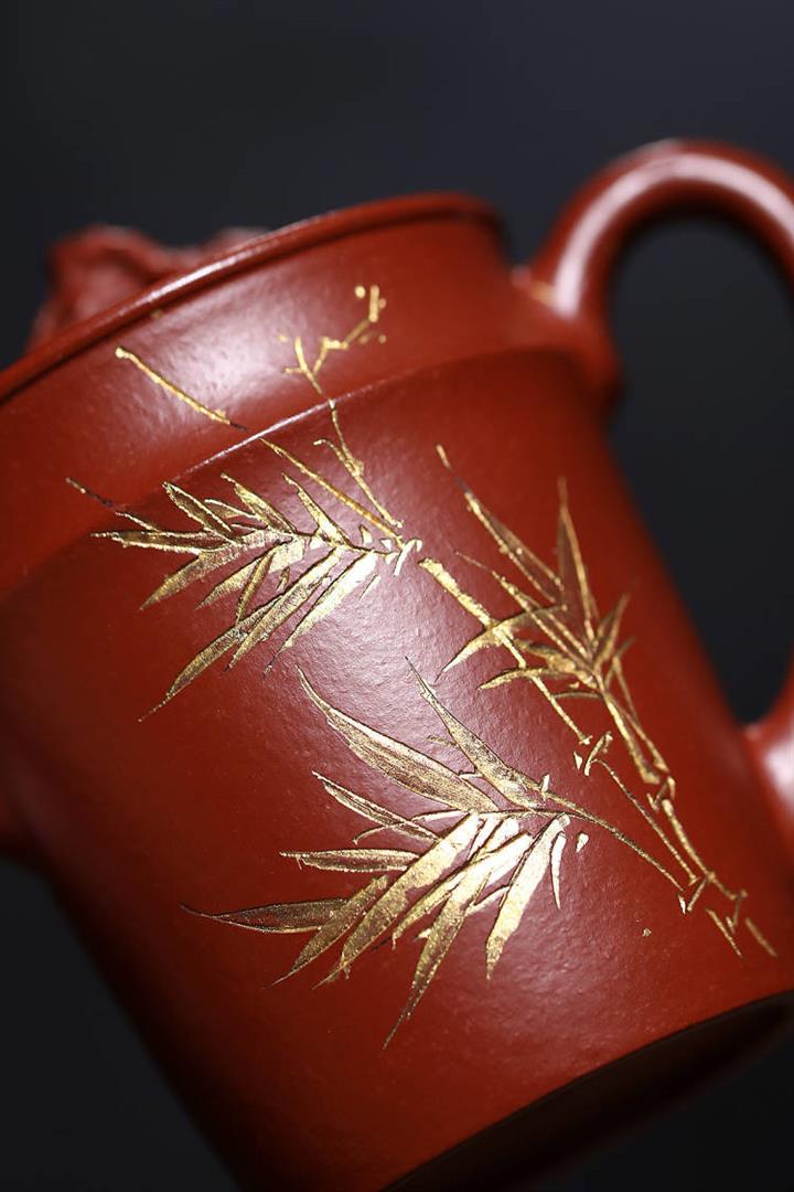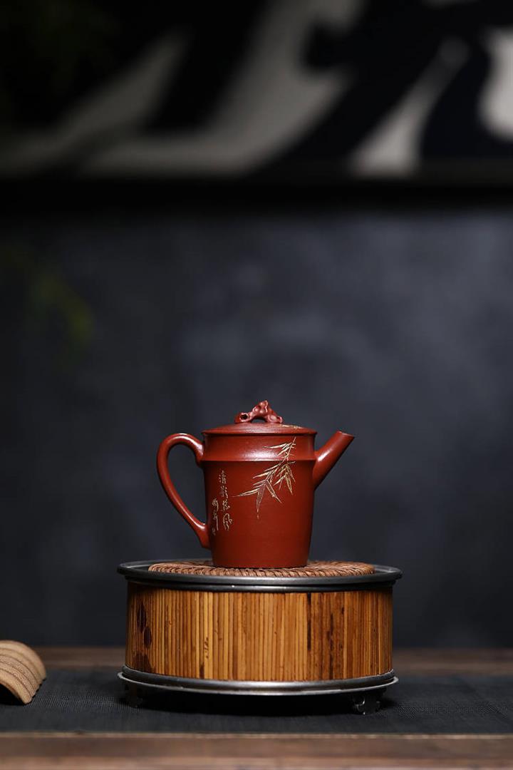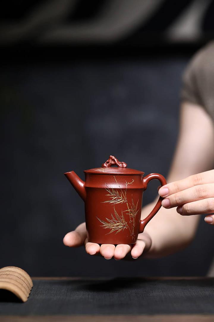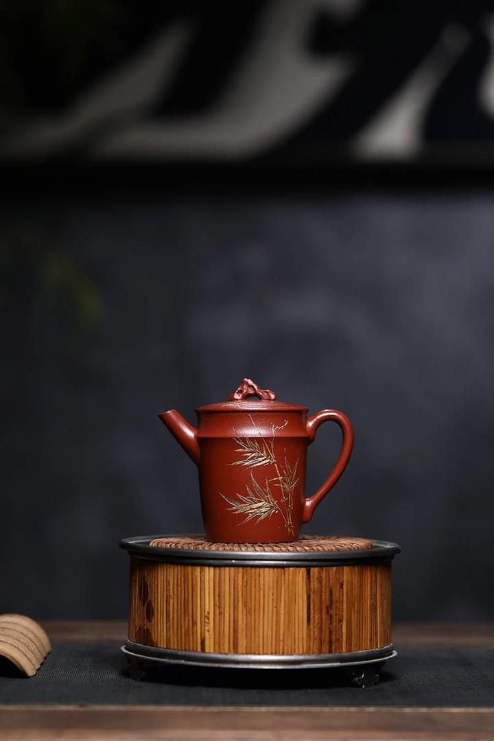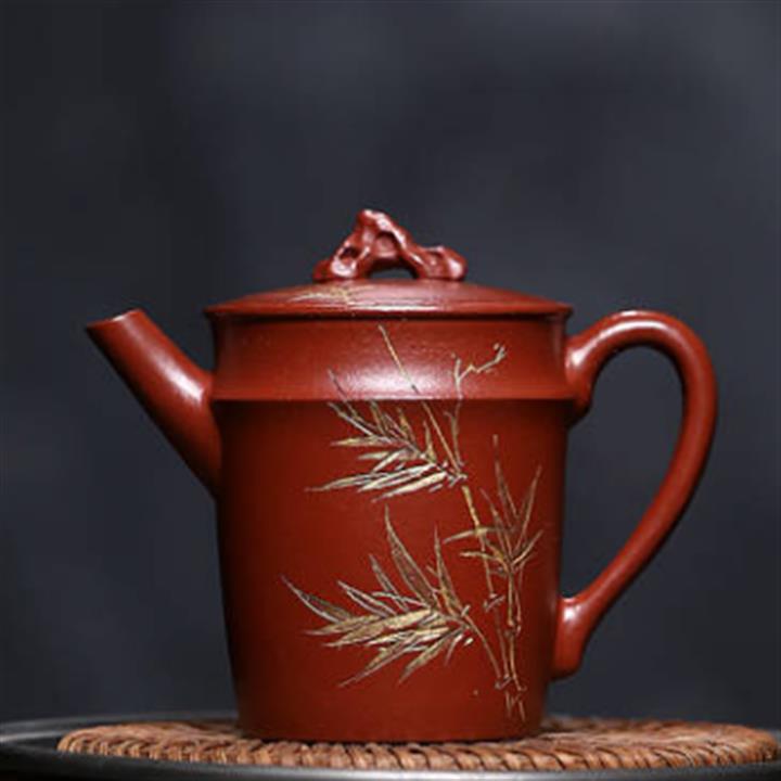 原礦綠泥手工鳥語花香竹節高升茶壺POT6802
