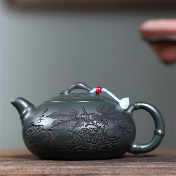 320cc原礦綠泥滿刻秋實秋趣茶壺POT8168