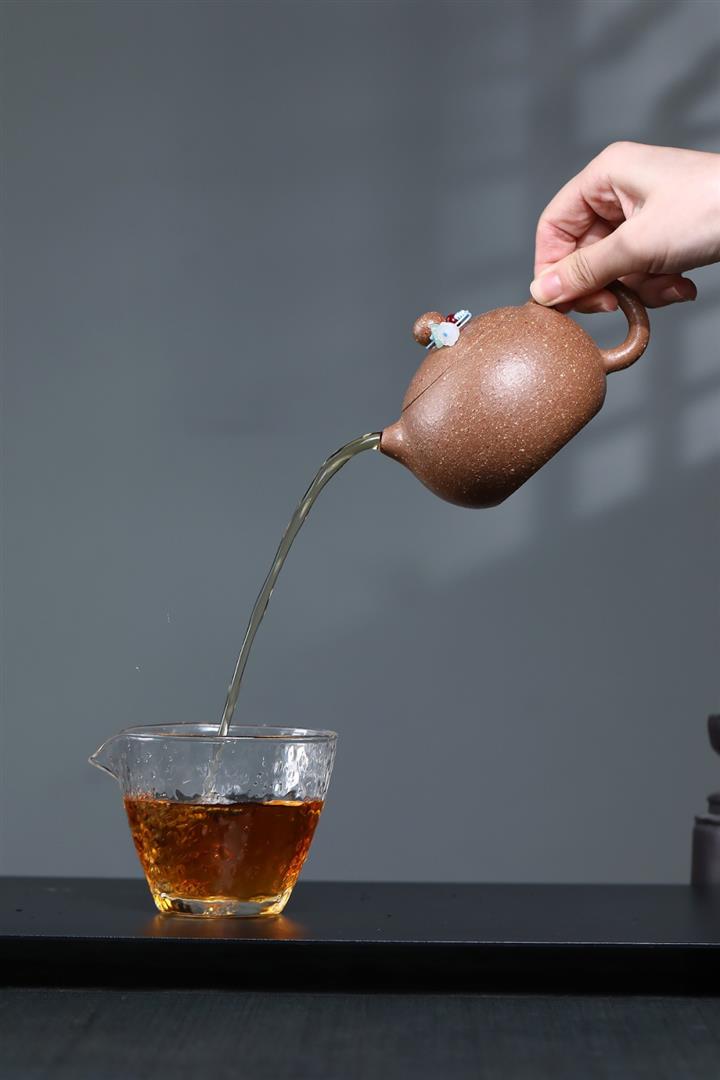 【泥料特點】砂土氣重,似淳實農民,日久使用,漸露鋒芒,養成變化,溫潤莊重。紫砂是壹種雙重氣孔結構的多孔性材質,氣孔微細,密度高。用紫砂壺沏茶,不失原味,且香不渙散,得茶之真香真味。紫砂使用越久,壺身色澤越發光亮照人,氣韻溫雅。紫砂壺長久使用器身會因撫摸擦拭,變得越發溫潤光澤。