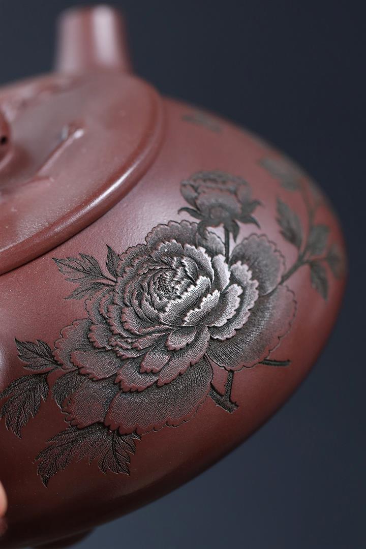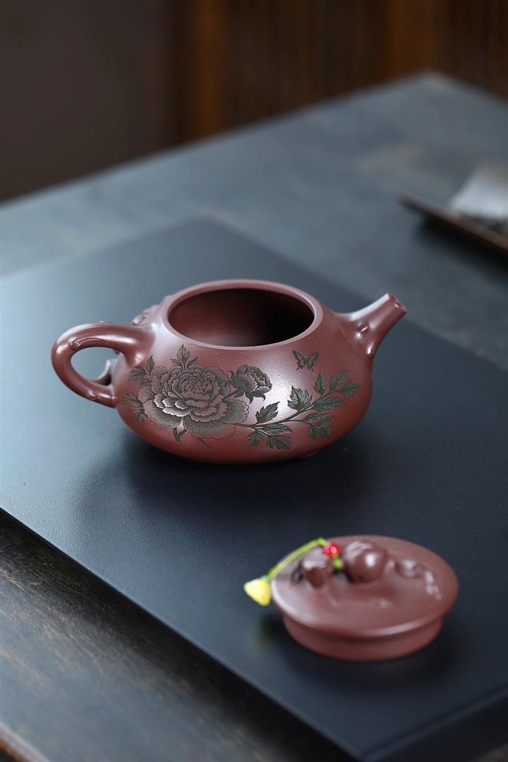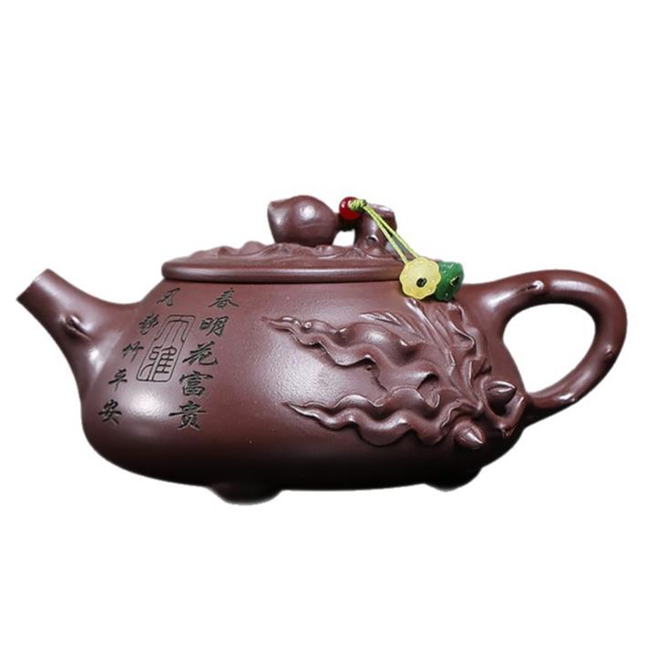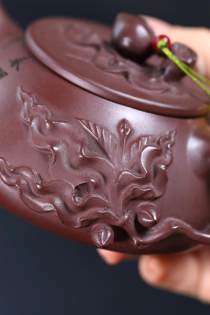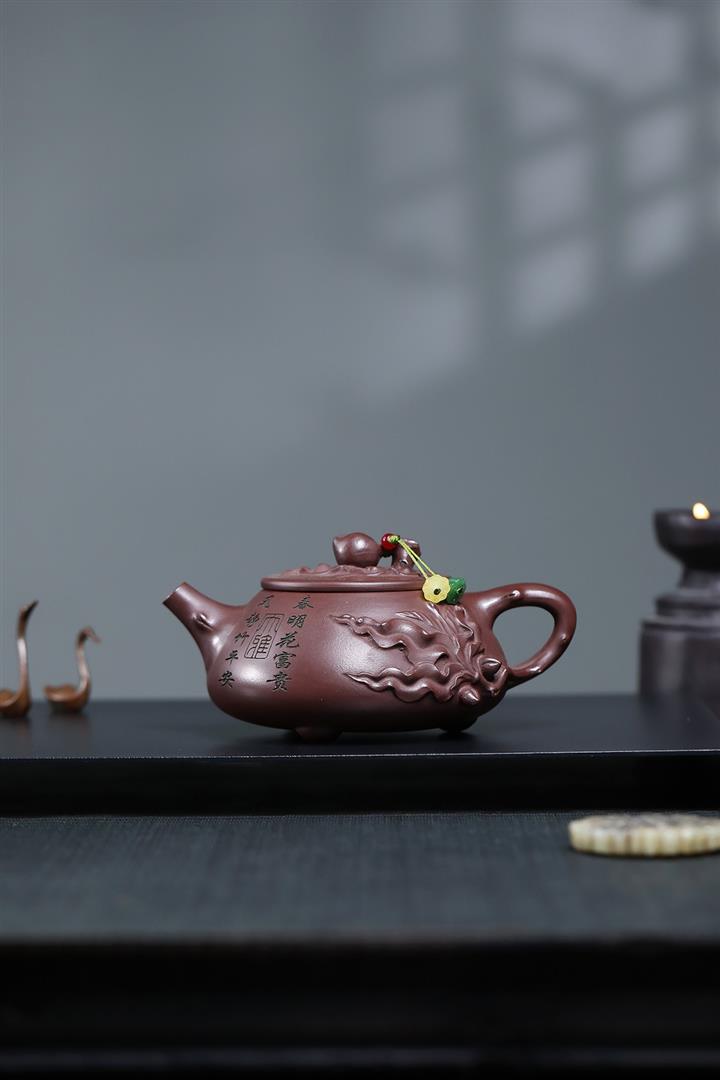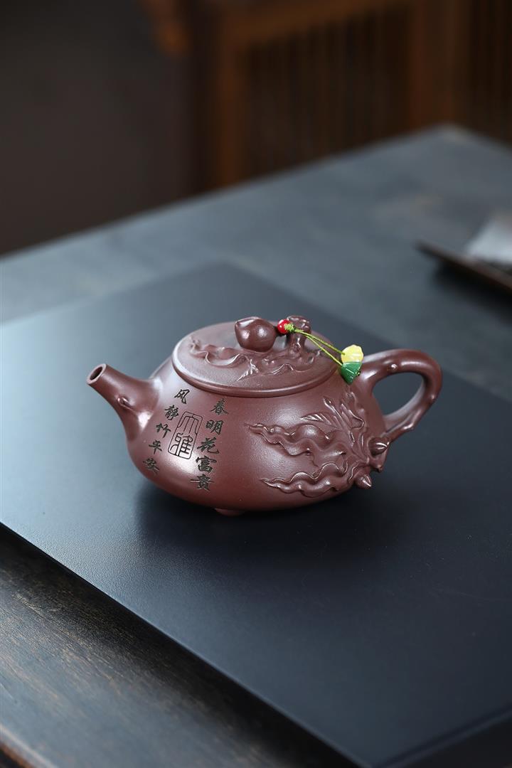 手工紫砂壺原礦紫泥紫砂茶壺年年有魚紫沙壺pot3685