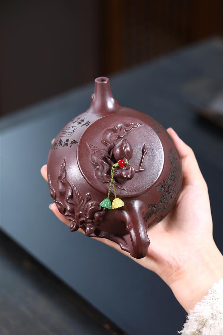 手工紫砂壺創意禮品紫砂茶具原礦紫泥吉祥如意pot3683