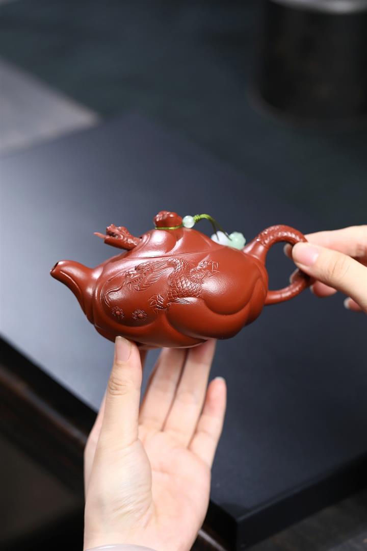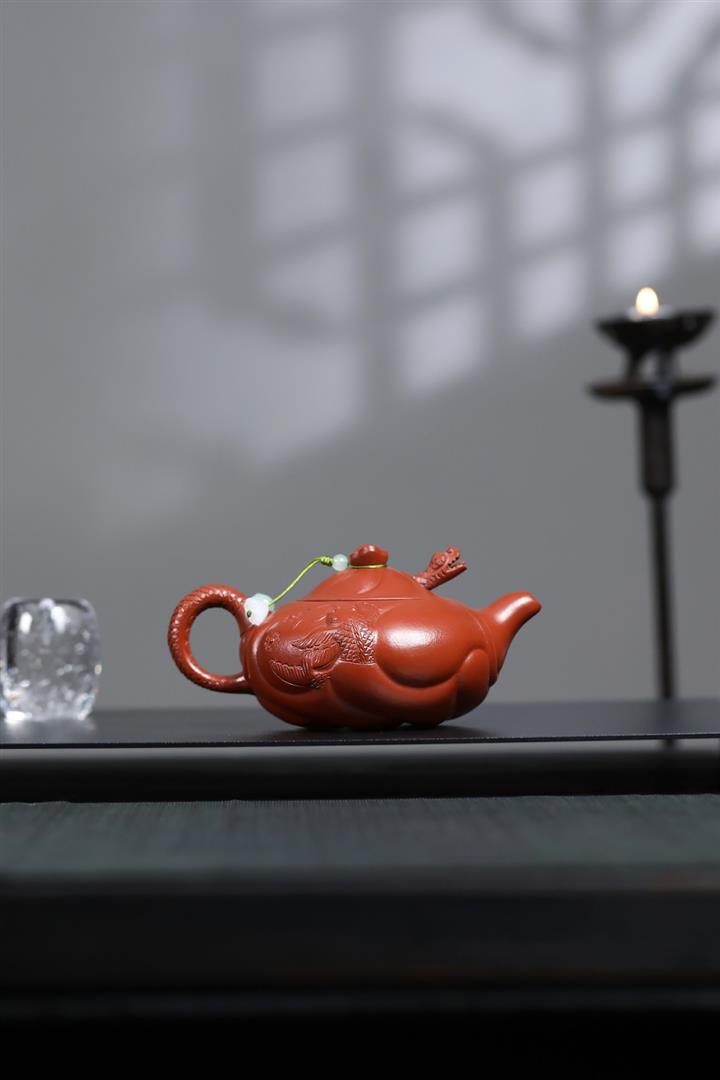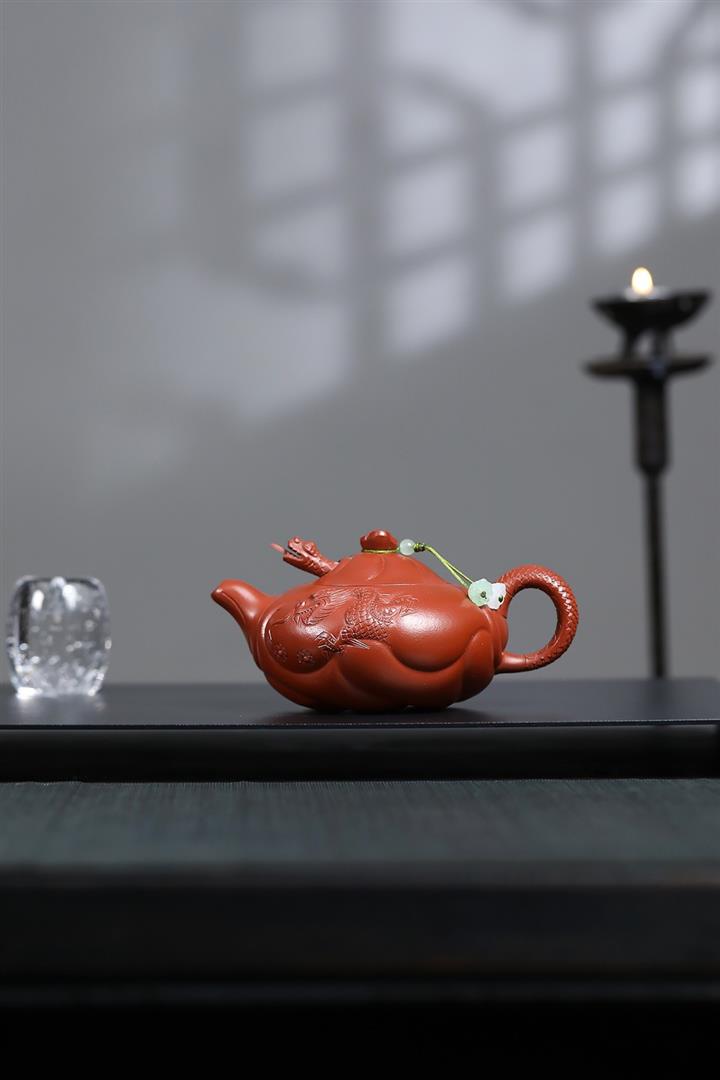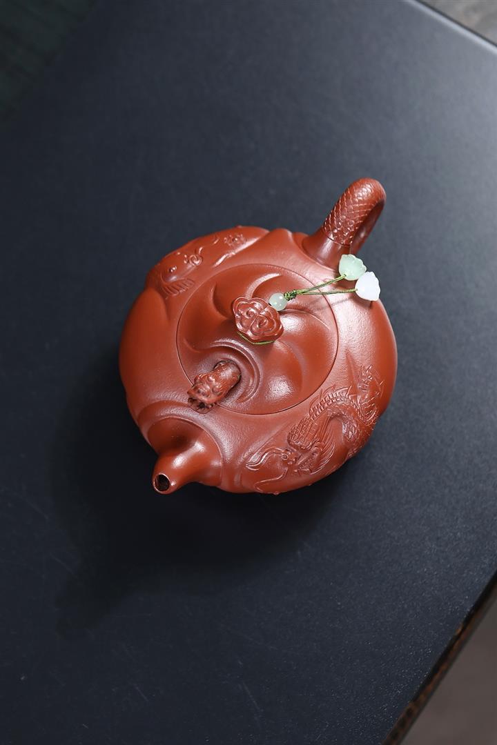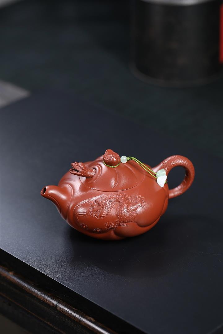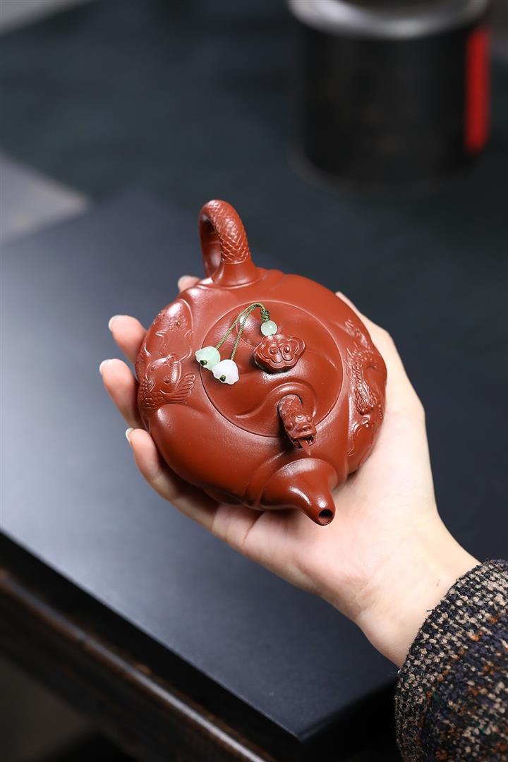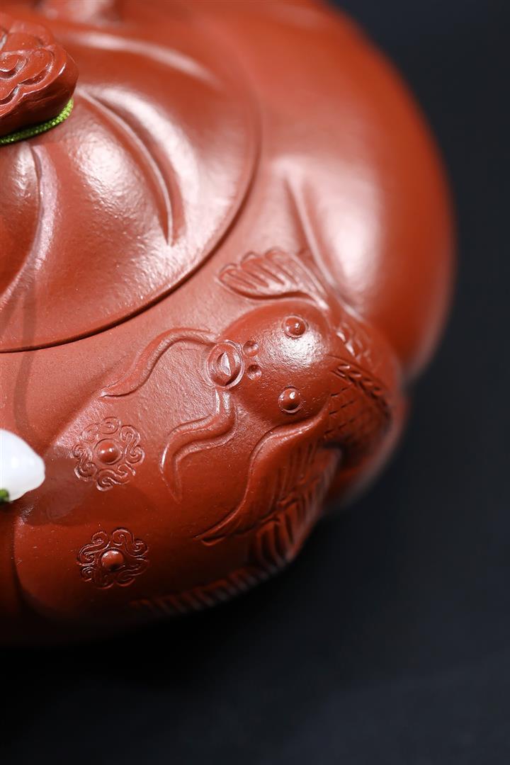 230cc原礦朱泥雕刻魚躍龍門茶壺POT8646