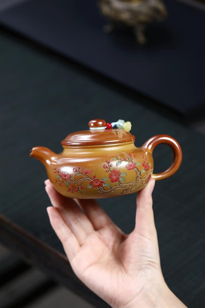 【作品介紹】此款壺形線條流暢,壺把,壺嘴,壺身壹氣呵成栩栩如生,是收藏把玩的好壺,泥料色澤古樸典雅,日久使用,漸露鋒芒,養成變化快,溫潤莊重,用其泡茶,使用的年代久,壺身就溫潤,泡出來的茶湯也就醇郁芳馨。