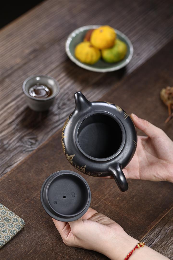 230cc原礦黃金朱泥蓮花宮燈壺POT8905