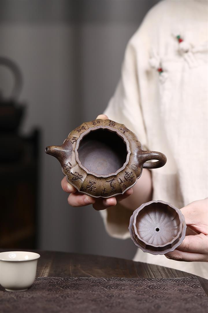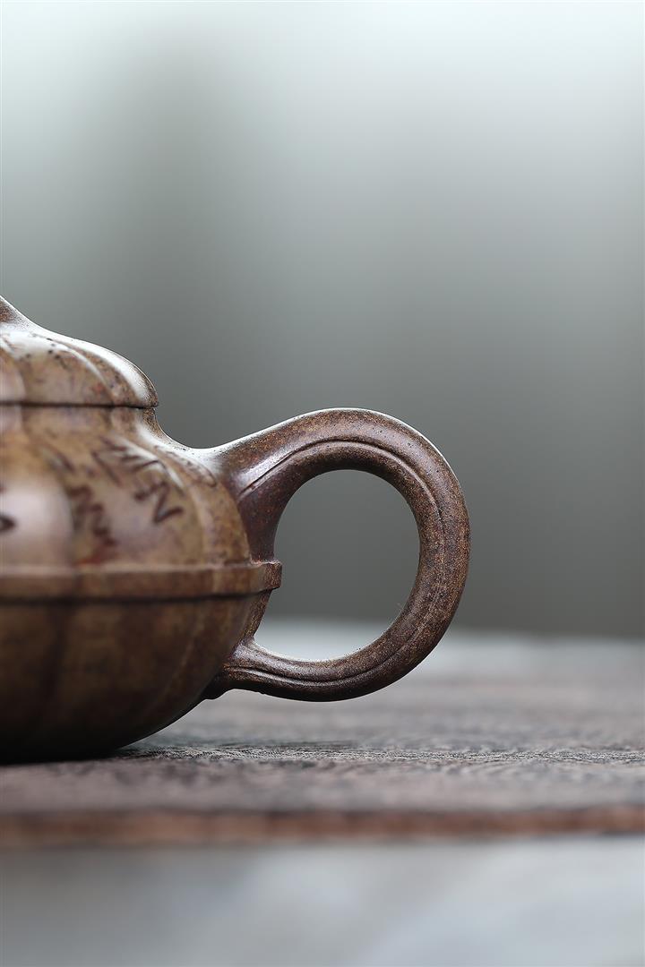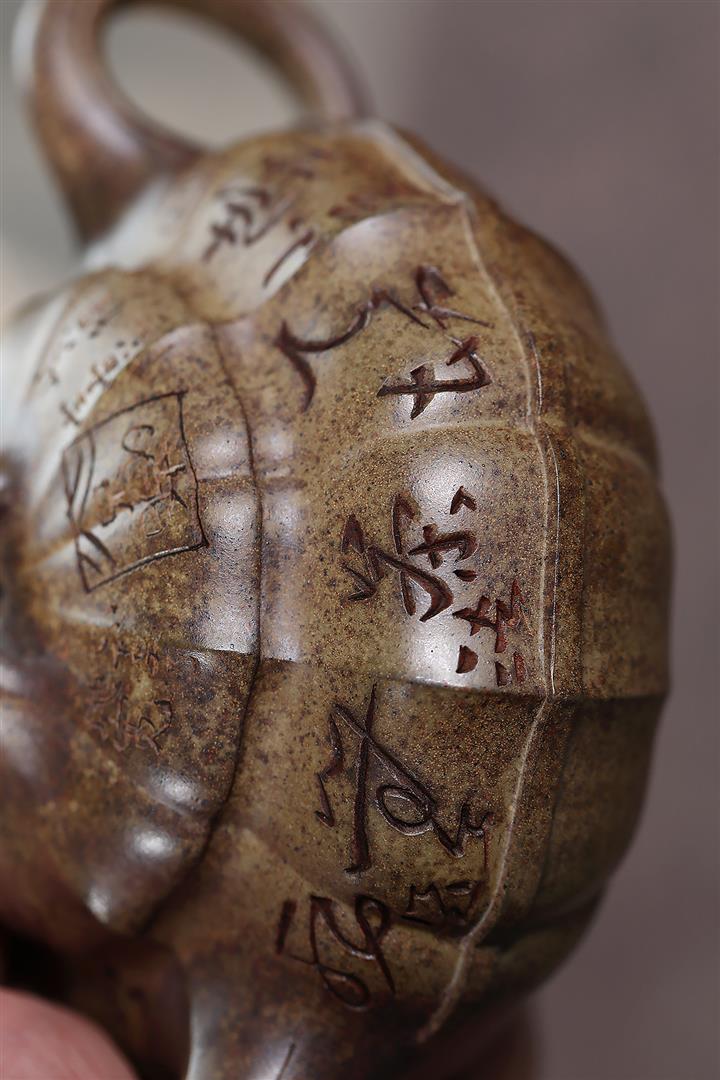 230cc原礦古烏泥筋紋百福石瓢茶壺POT8123