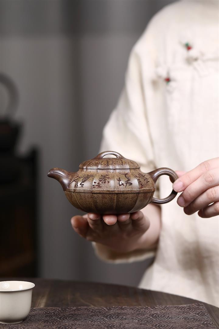 200cc原礦紫泥刻字景舟石瓢茶壺POT8125
