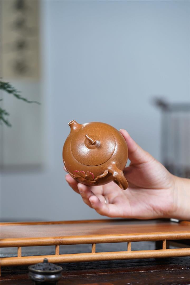 320cc原礦石紅泥貝殼燒金砂逸景壺POT8400