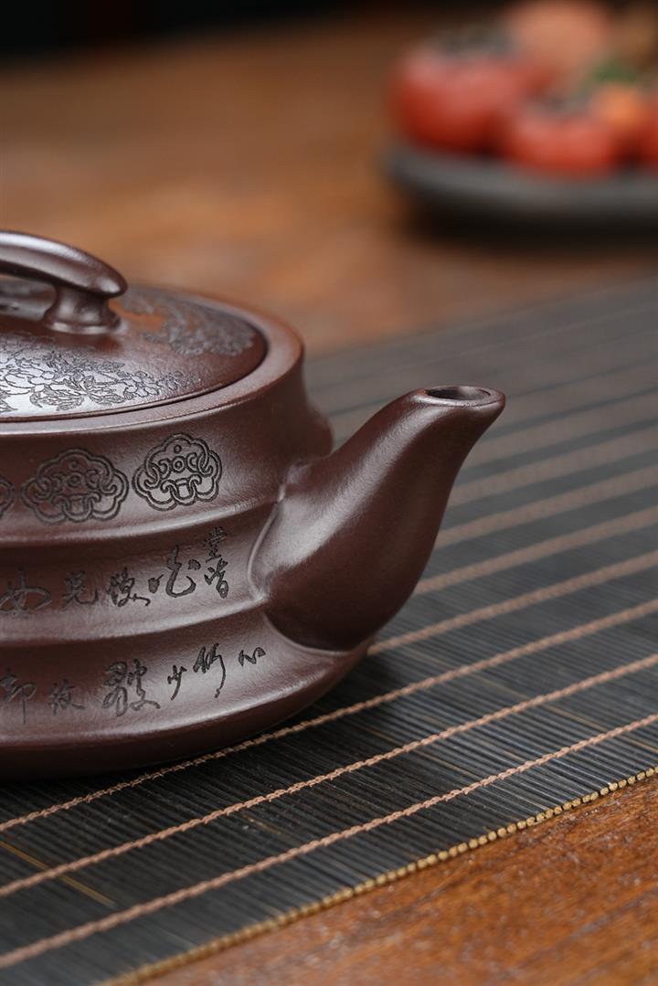 140cc原礦深井老紫泥筋紋添香茶壺POT8327