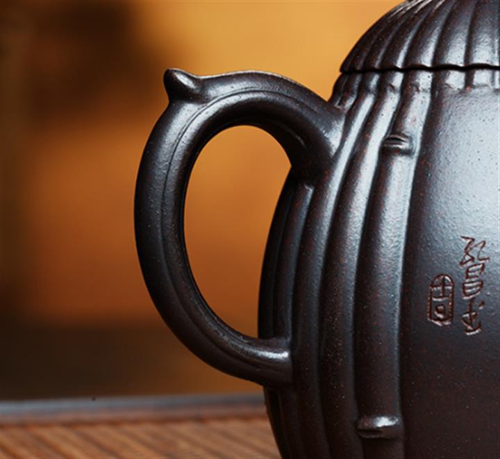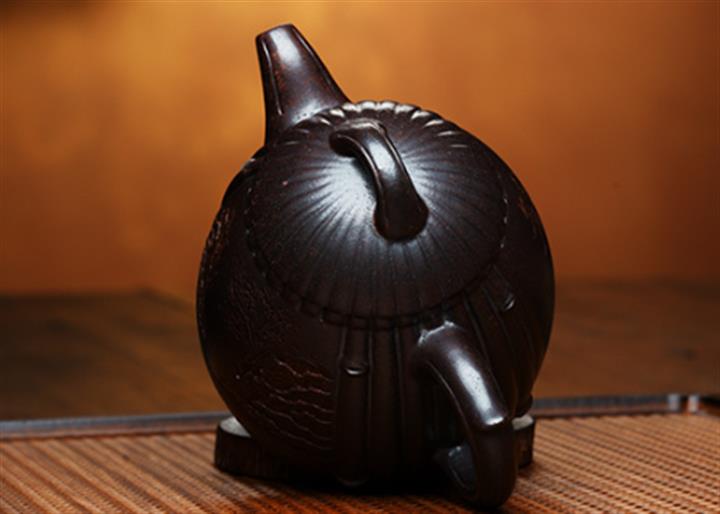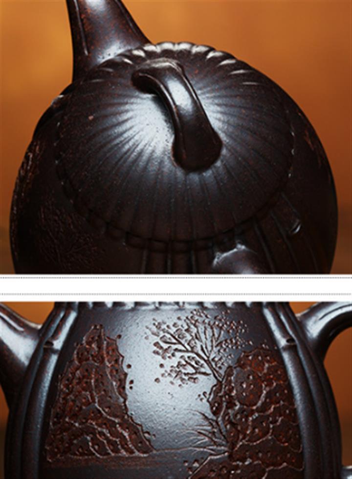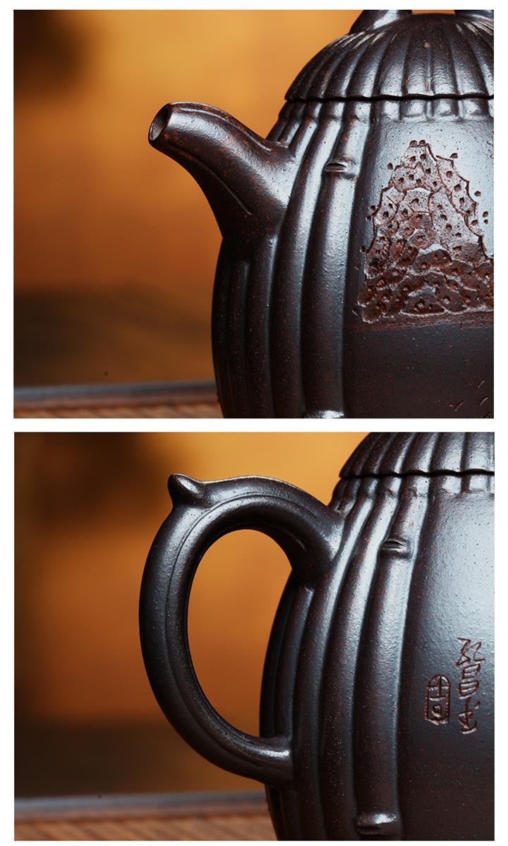 530cc原礦石紅泥春色滿園竹段茶壺POT8645
