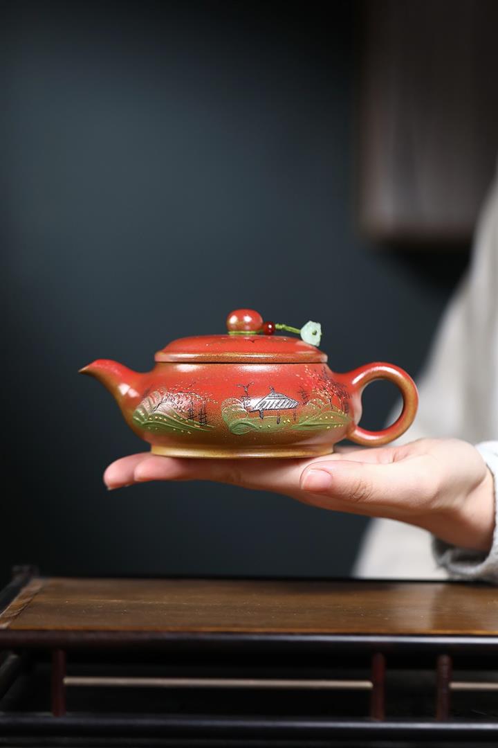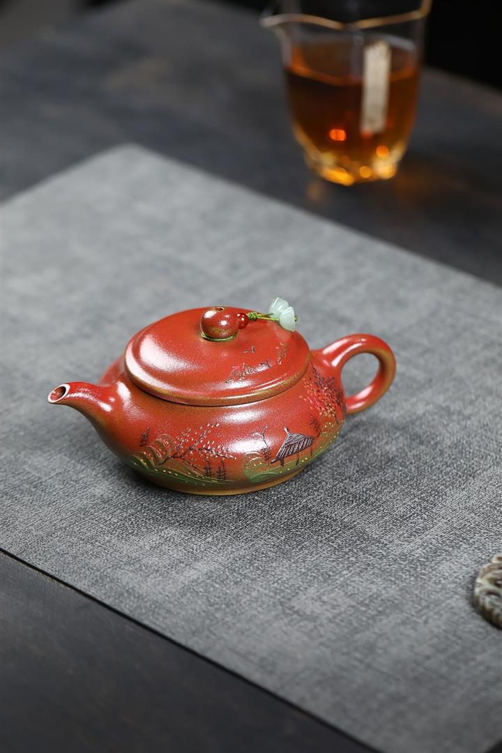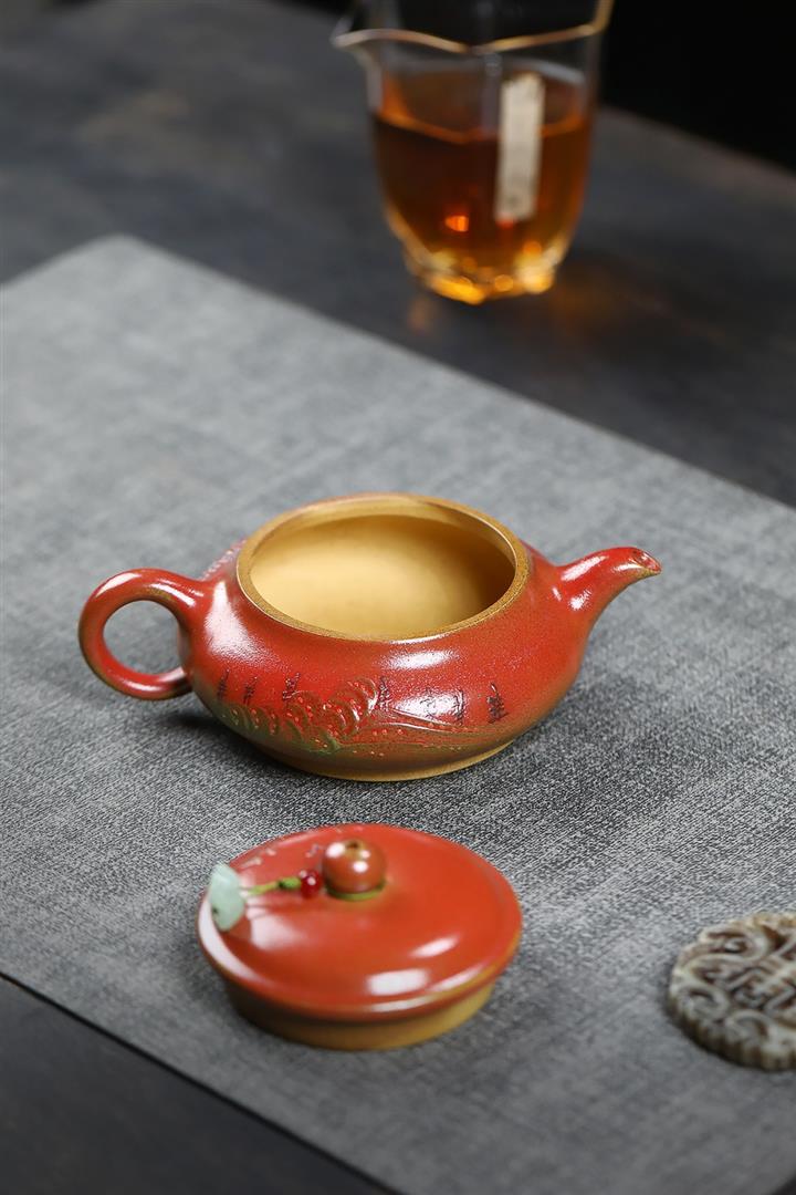 手工紫砂壺圍爐喜上枝頭茶壺POT4256