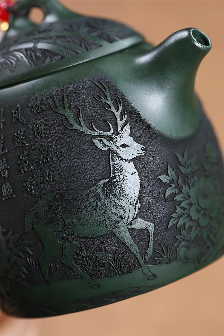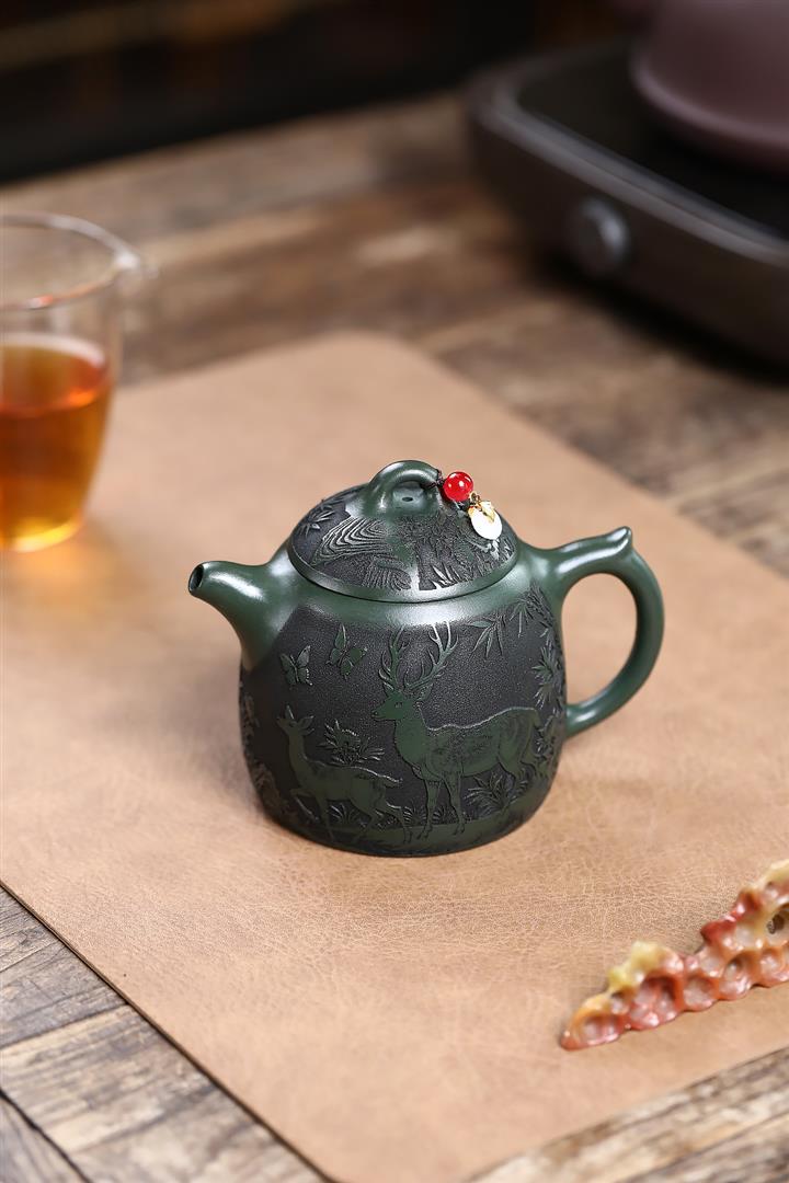 360cc原礦墨綠泥福鹿秦權茶壺POT9172
