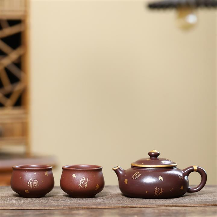 260cc原礦紫泥描金漢鐸壹壺兩杯茶壺POT9285