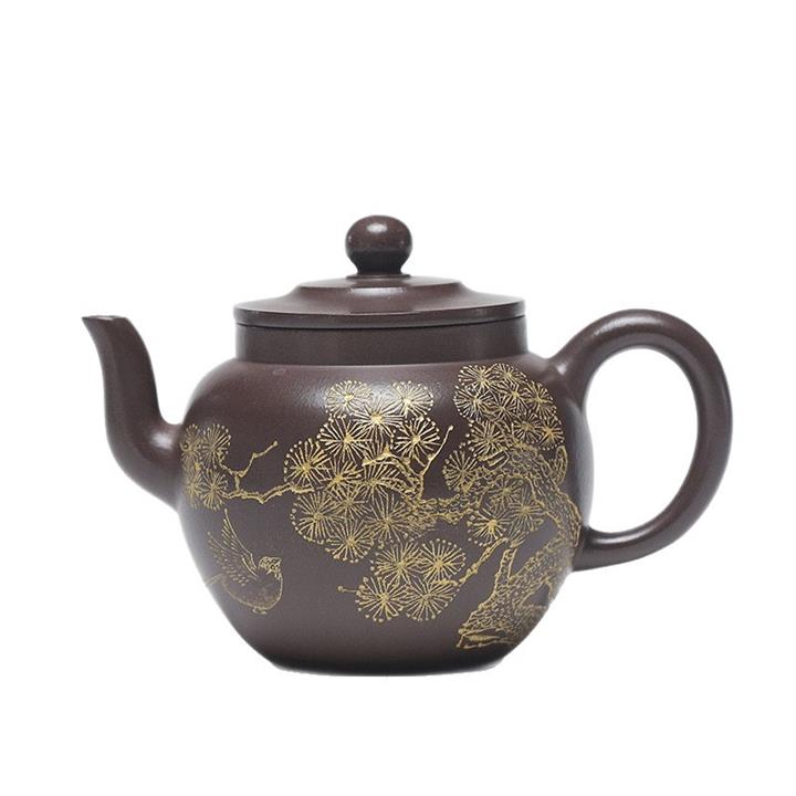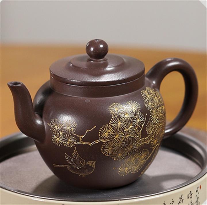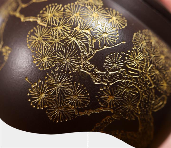 230cc原礦玄鐵石黃黑料松樹蓮子茶壺POT9183