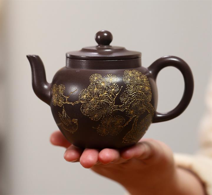 【泥料特點】砂土氣重,似淳實農民,日久使用,漸露鋒芒,養成變化,溫潤莊重。紫砂是壹種雙重氣孔結構的多孔性材質,氣孔微細,密度高。用紫砂壺沏茶,不失原味,且香不渙散,得茶之真香真味。紫砂使用越久,壺身色澤越發光亮照人,氣韻溫雅。紫砂壺長久使用器身會因撫摸擦拭,變得越發溫潤光澤。