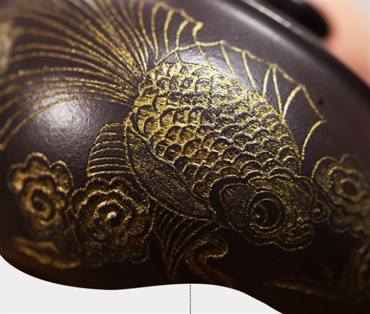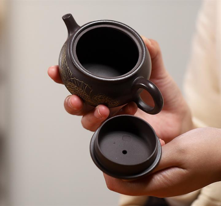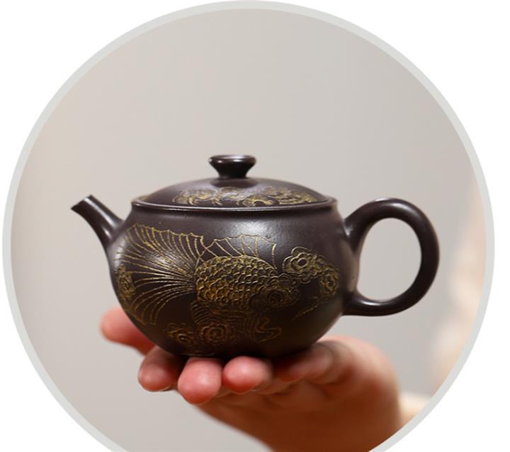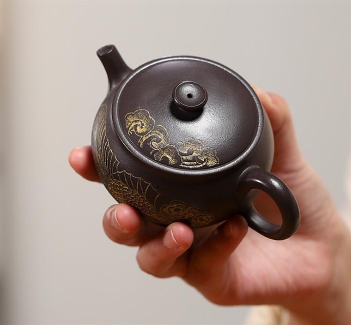 150cc原礦玄鐵石黃泥金玉滿堂茶壺POT9184