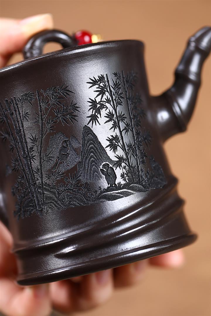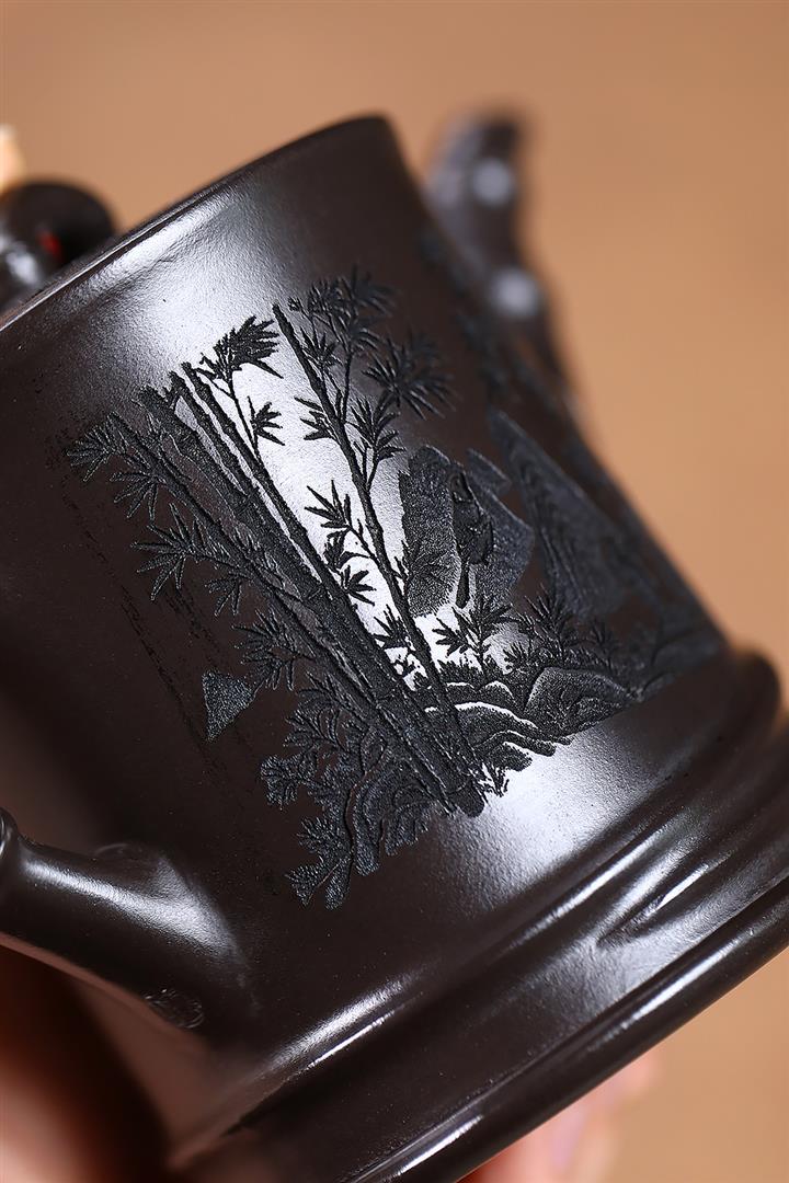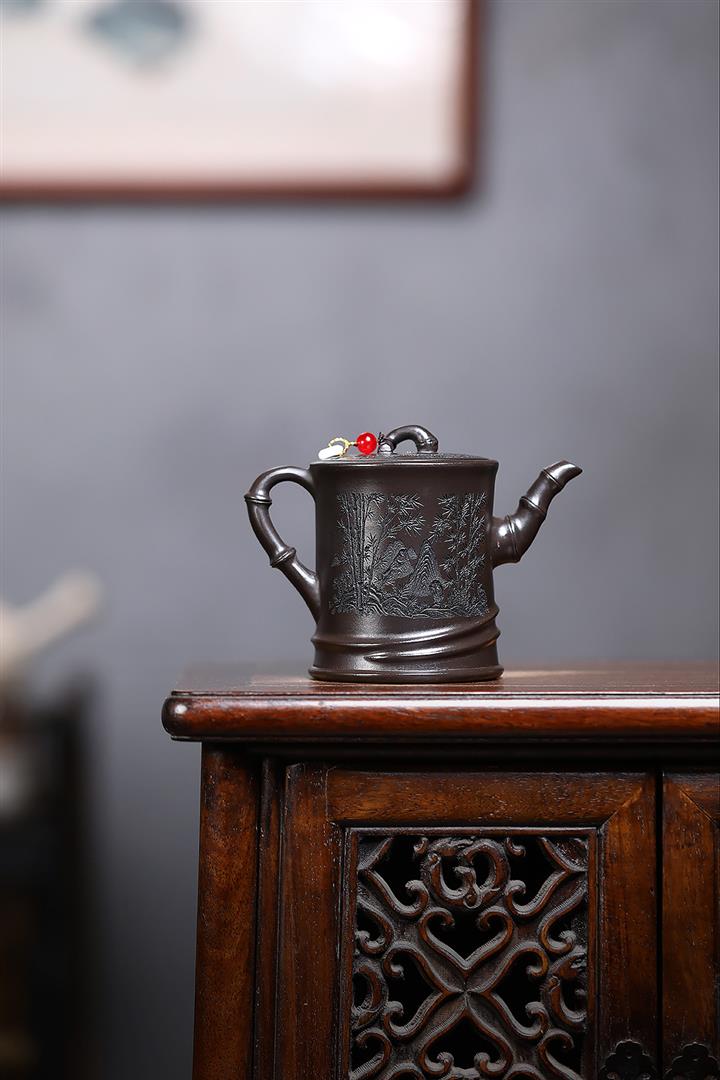 180cc原礦黑泥刻繪觀雲聽雨泡茶壺POT9716