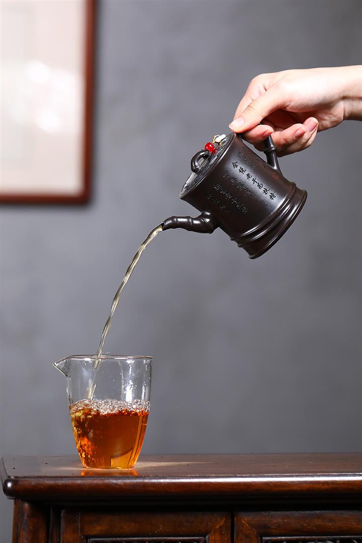 【泥料特點】砂土氣重,似淳實農民,日久使用,漸露鋒芒,養成變化,溫潤莊重。紫砂是壹種雙重氣孔結構的多孔性材質,氣孔微細,密度高。用紫砂壺沏茶,不失原味,且香不渙散,得茶之真香真味。紫砂使用越久,壺身色澤越發光亮照人,氣韻溫雅。紫砂壺長久使用器身會因撫摸擦拭,變得越發溫潤光澤。