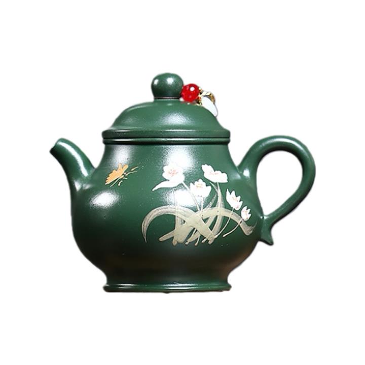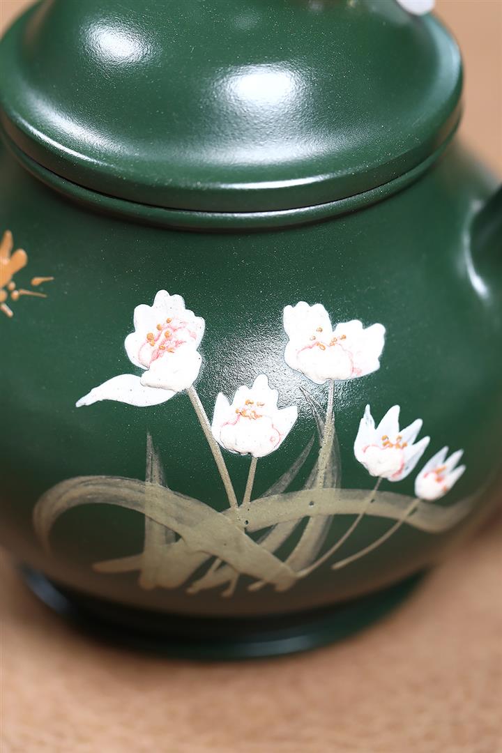 180cc原礦翡翠綠泥蝶戀花潘壺茶壺POT9245