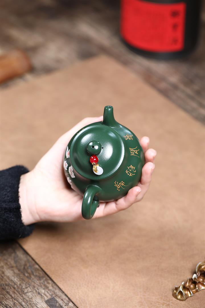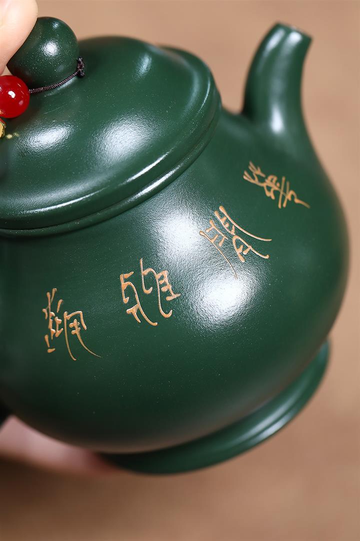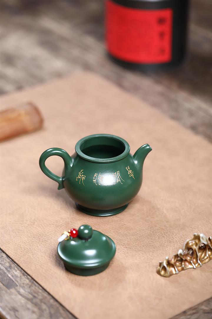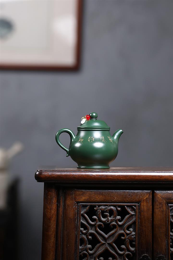 150cc原礦綠泥雙刀刻繪文心漢瓦茶壺POT9151