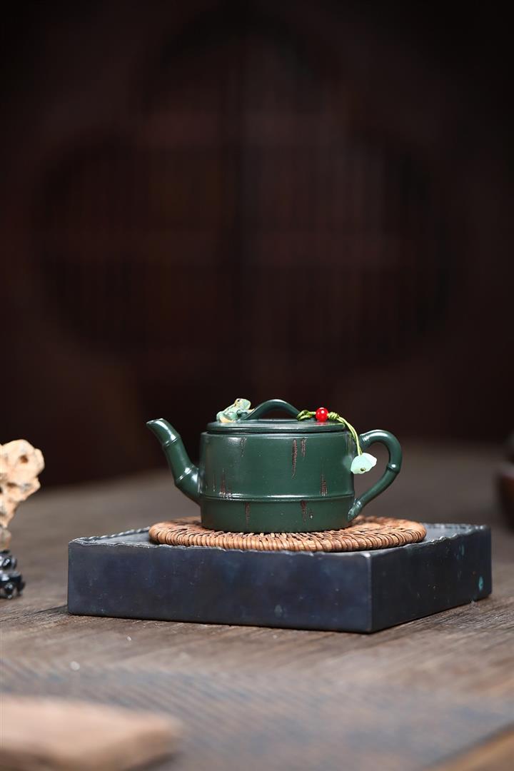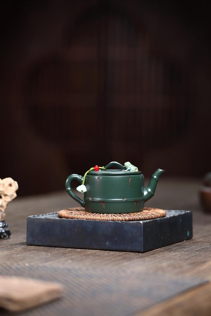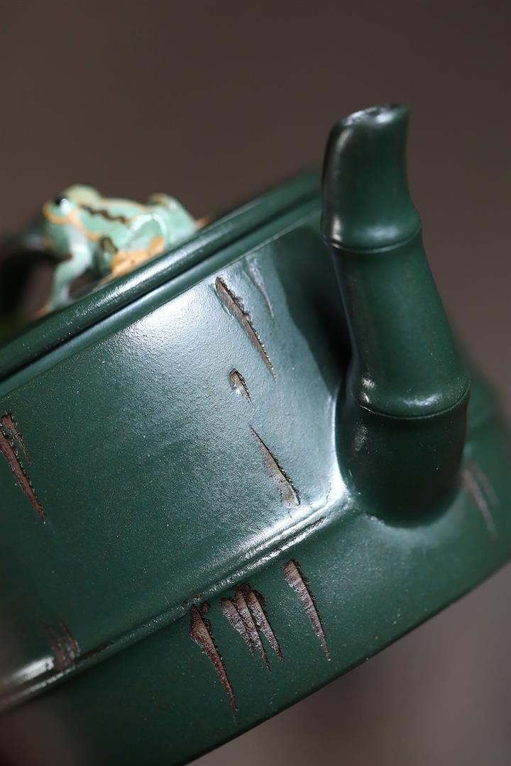 150cc原礦優質綠泥竹蛙聽雨茶壺POT9270