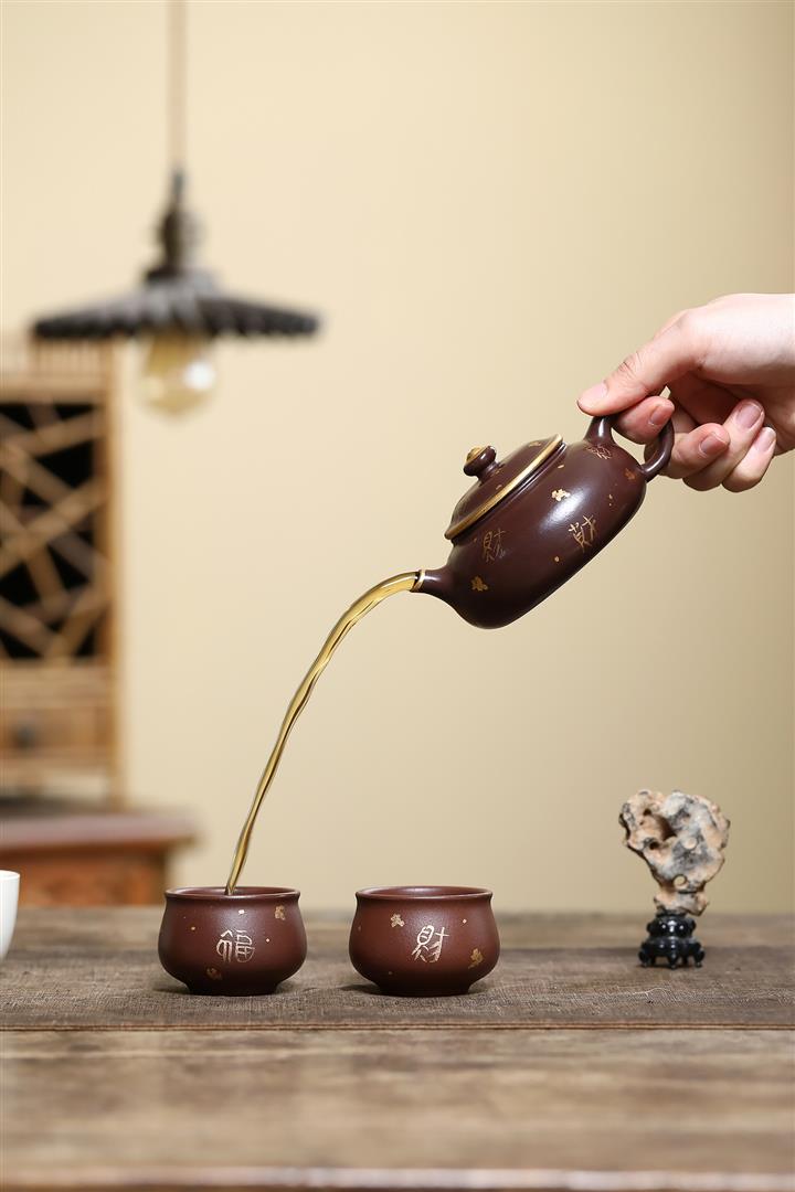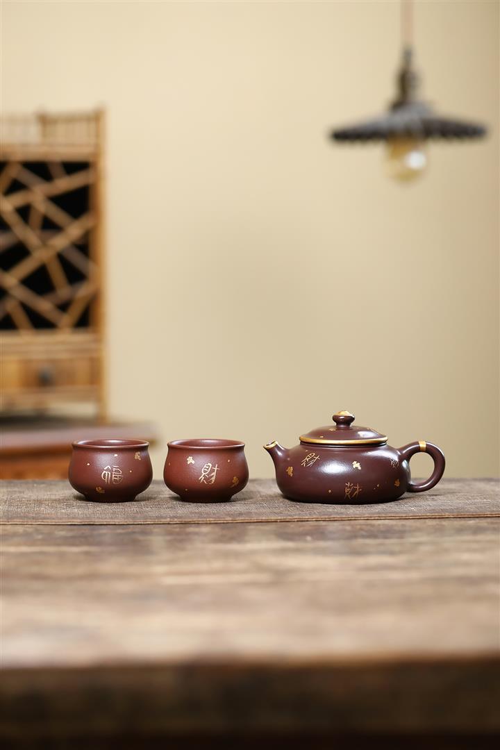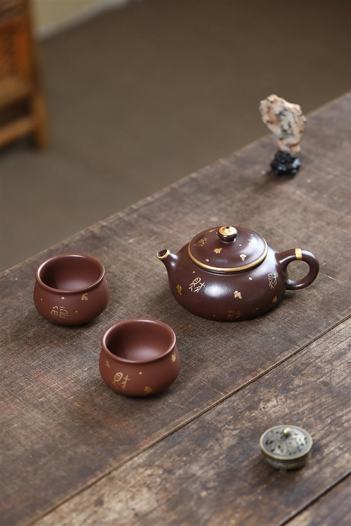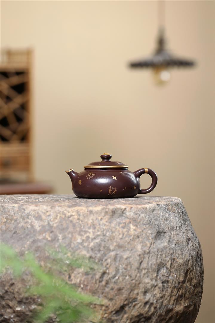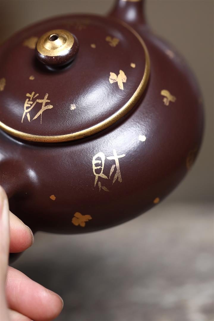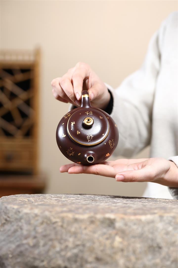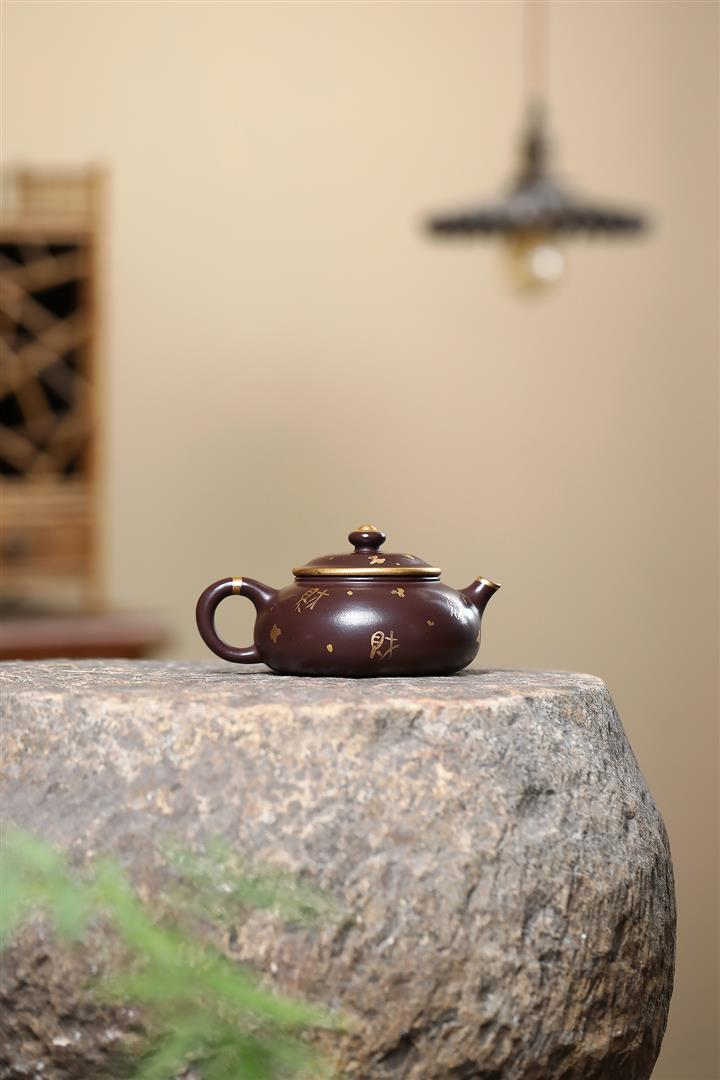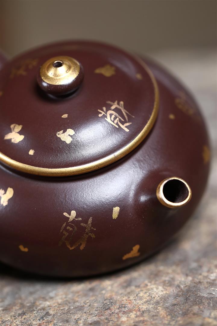 150cc原礦大紅袍焐灰灑金寒江茶壺POT8219