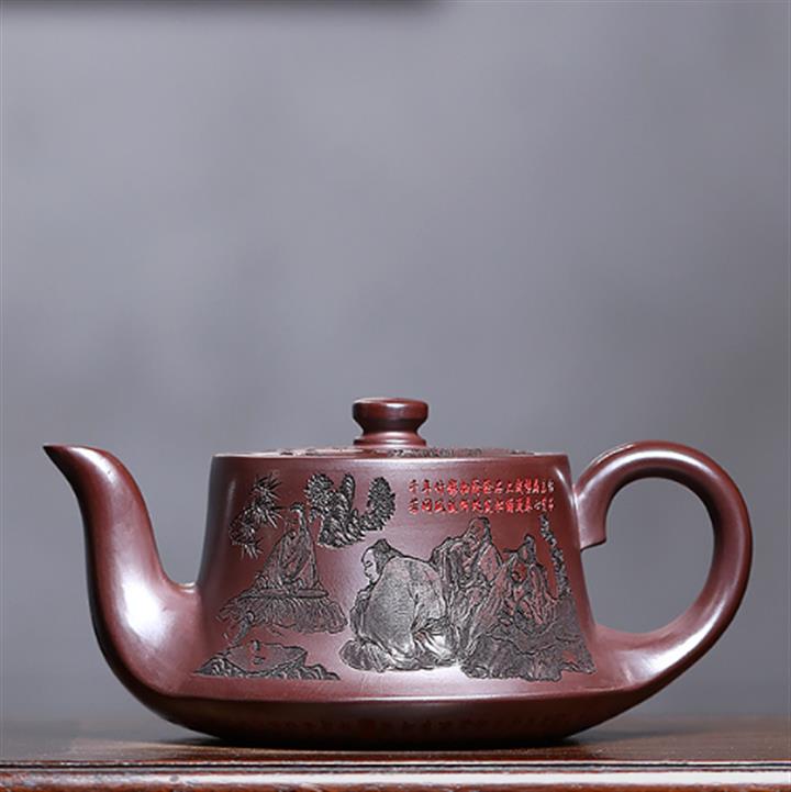 520cc原礦石紅竹林七賢曲壺泡茶壺POT9212