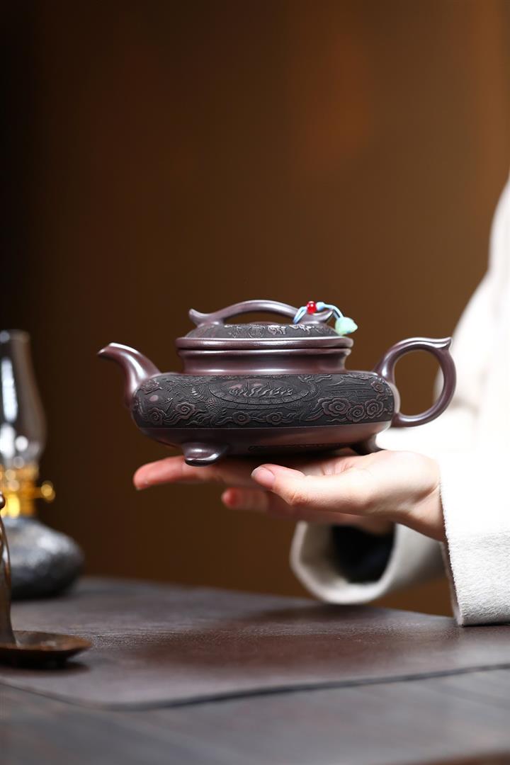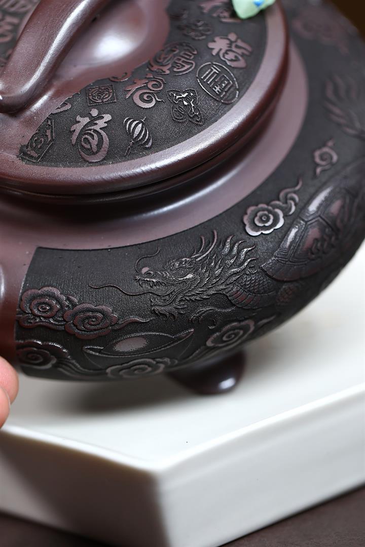 520cc原礦石紅泥福祿雲鼎茶壺POT9294