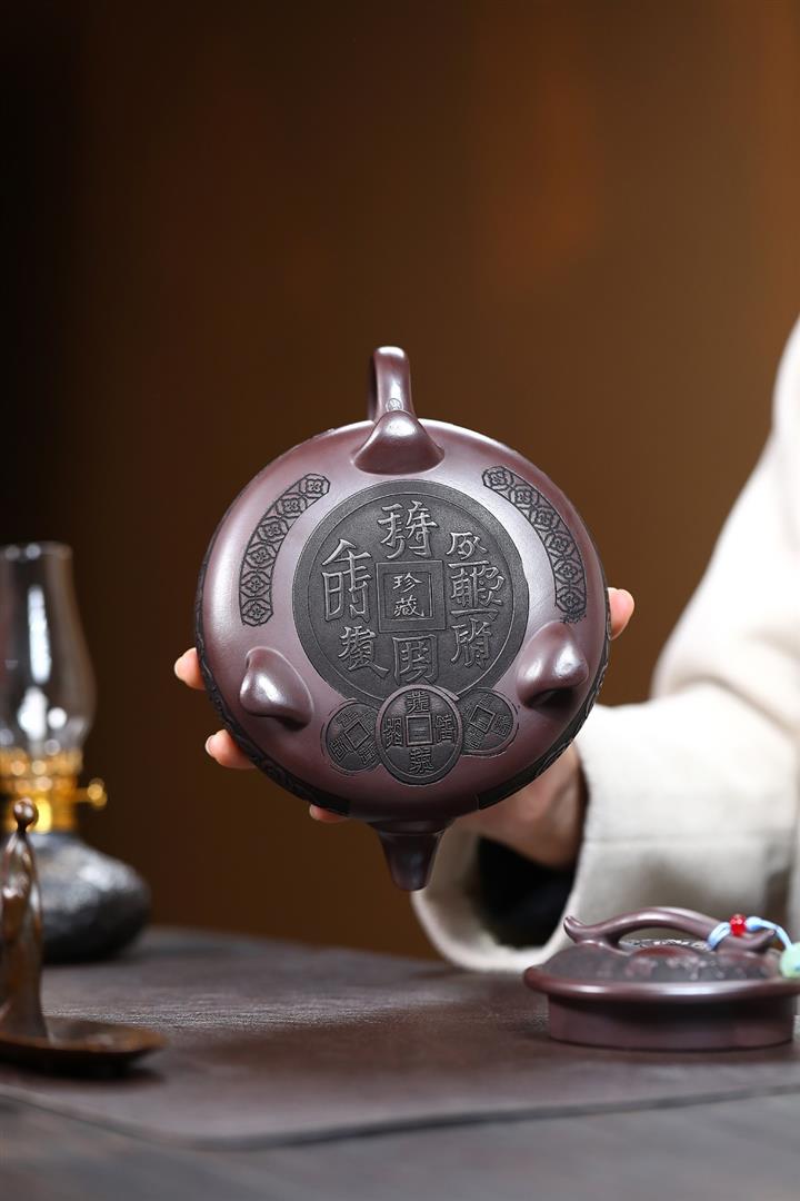 【作品介紹】此款壺形線條流暢,壺把,壺嘴,壺身壹氣呵成栩栩如生,是收藏把玩的好壺,泥料色澤古樸典雅,日久使用,漸露鋒芒,養成變化快,溫潤莊重,用其泡茶,使用的年代久,壺身就溫潤,泡出來的茶湯也就醇郁芳馨。