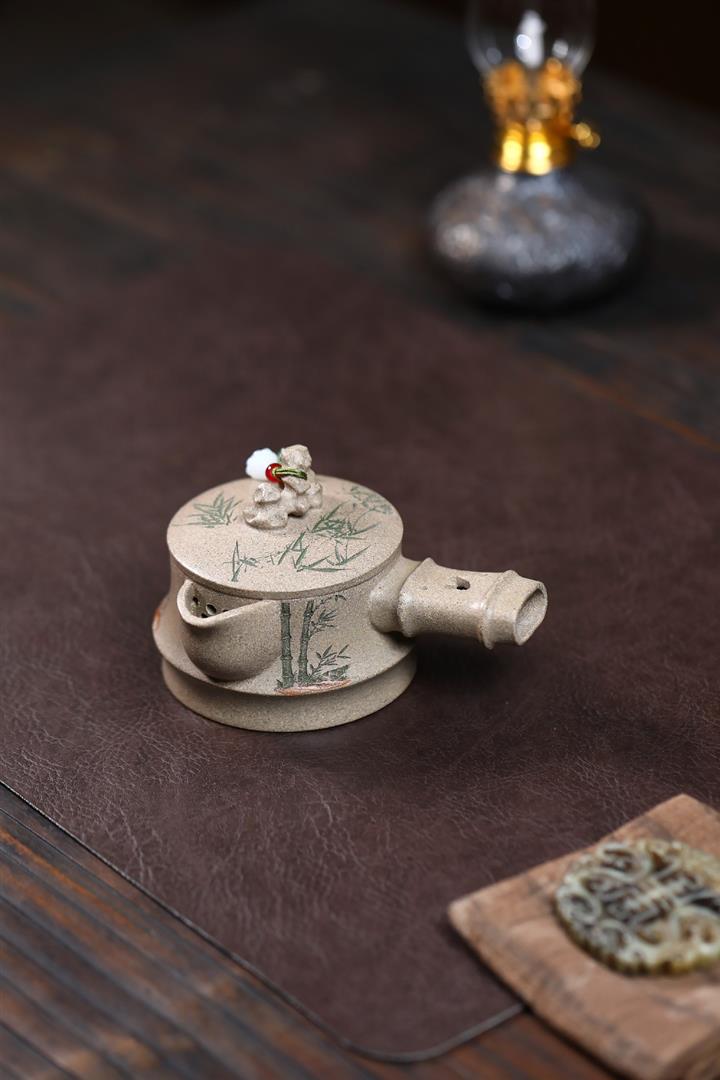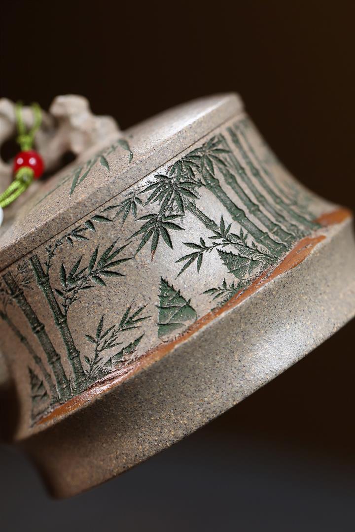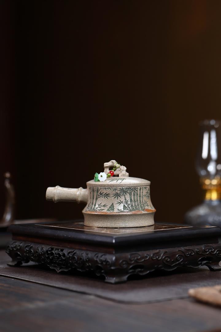 精·翡翠青紫泥抽角竹鼓紫砂壺POT6309
