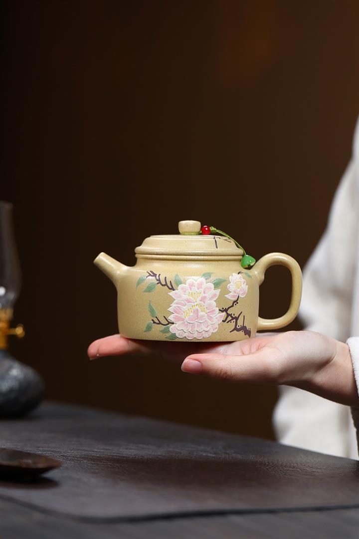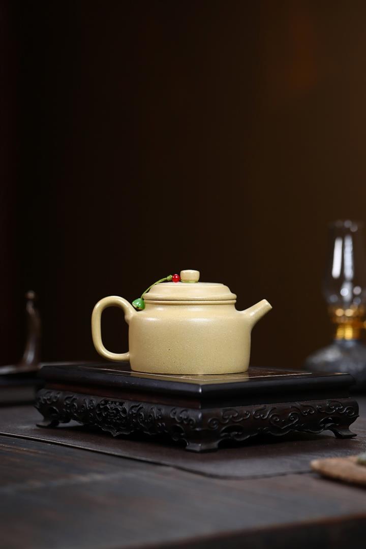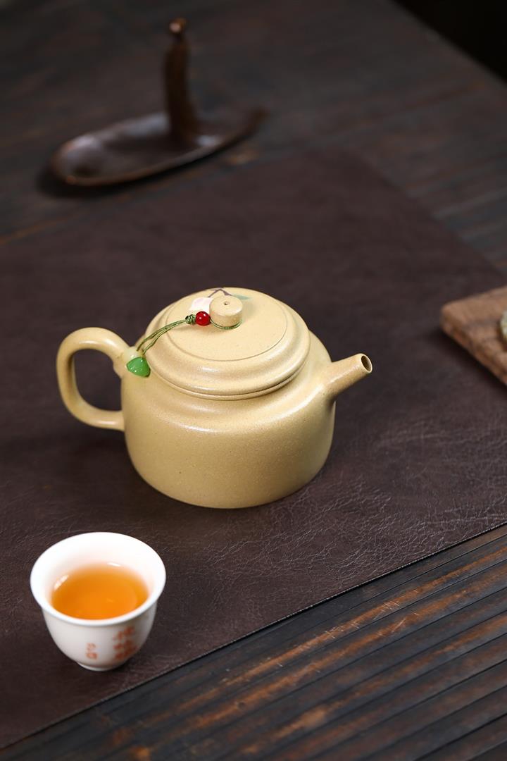 450cc原礦石黃和氣生財扁晨泡茶壺POT9640