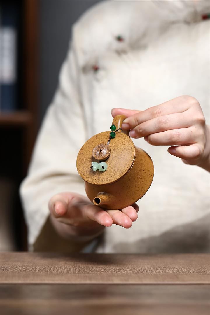【泥料特點】砂土氣重,似淳實農民,日久使用,漸露鋒芒,養成變化,溫潤莊重。紫砂是壹種雙重氣孔結構的多孔性材質,氣孔微細,密度高。用紫砂壺沏茶,不失原味,且香不渙散,得茶之真香真味。紫砂使用越久,壺身色澤越發光亮照人,氣韻溫雅。紫砂壺長久使用器身會因撫摸擦拭,變得越發溫潤光澤。