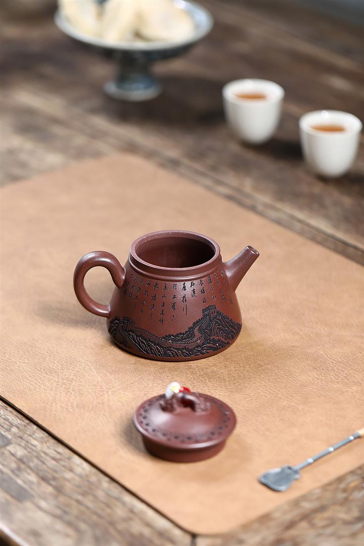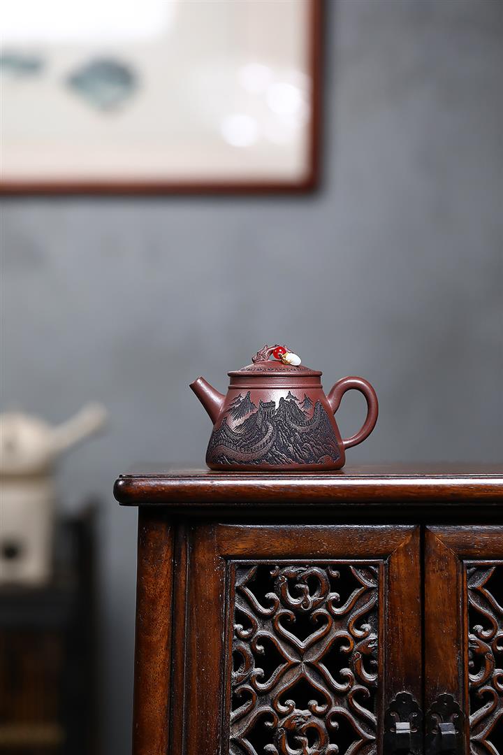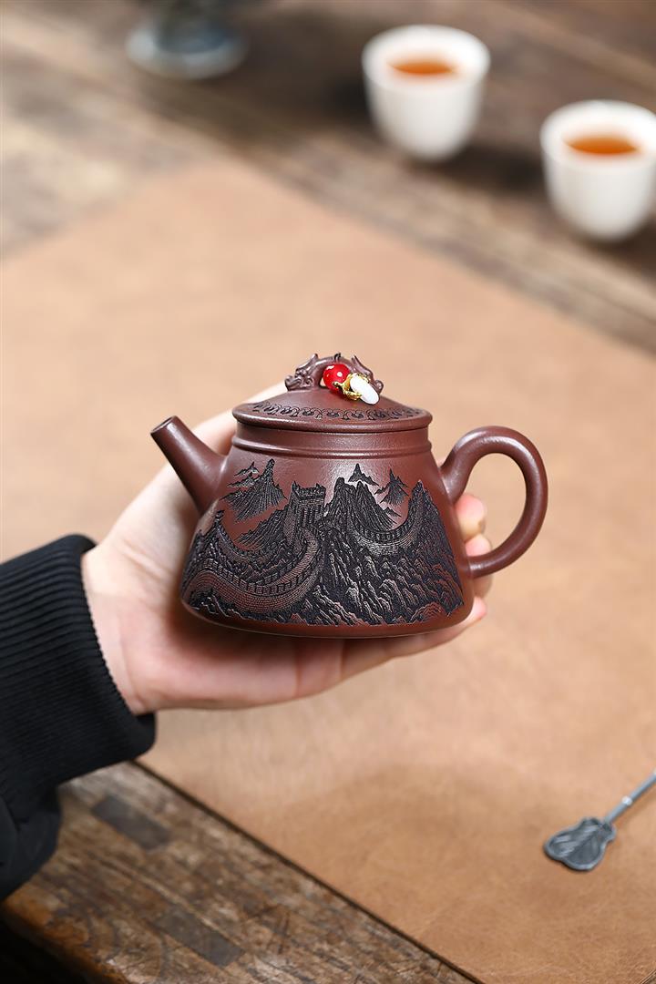 【作品介紹】此款壺形線條流暢,壺把,壺嘴,壺身壹氣呵成栩栩如生,是收藏把玩的好壺,泥料色澤古樸典雅,日久使用,漸露鋒芒,養成變化快,溫潤莊重,用其泡茶,使用的年代久,壺身就溫潤,泡出來的茶湯也就醇郁芳馨。