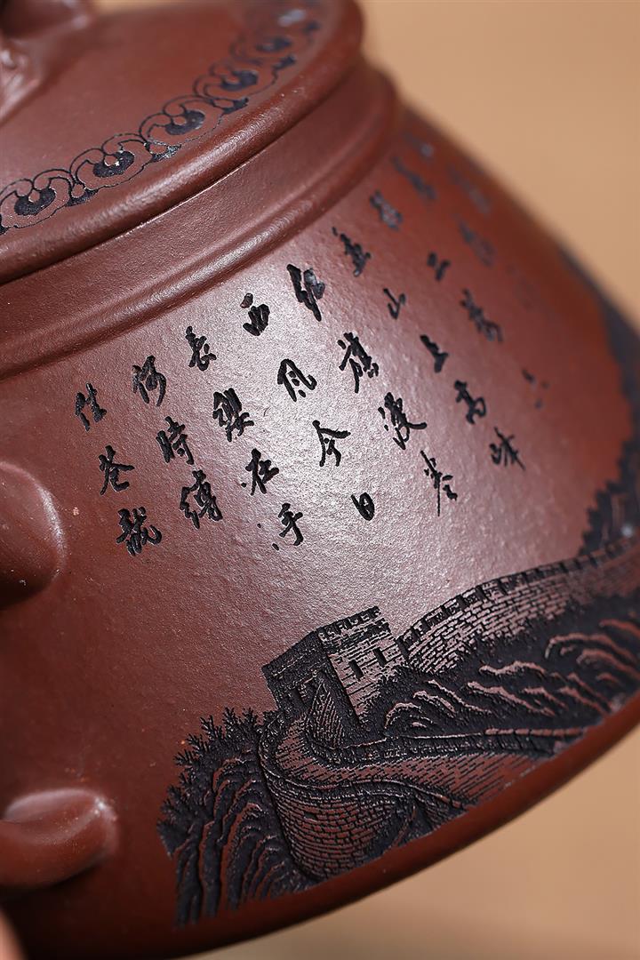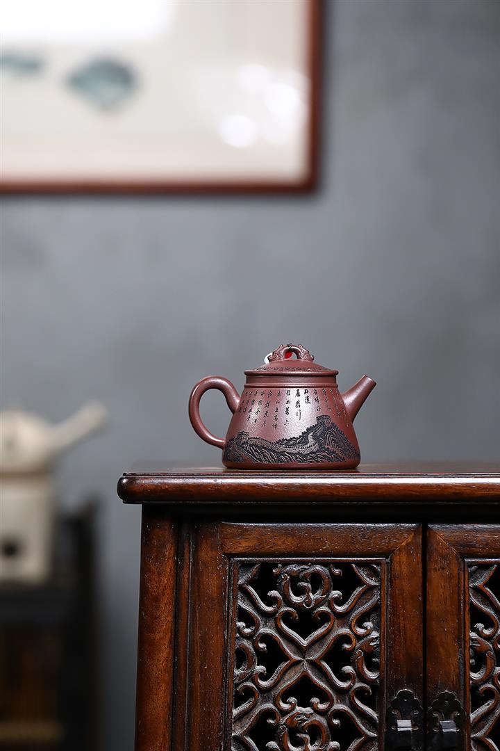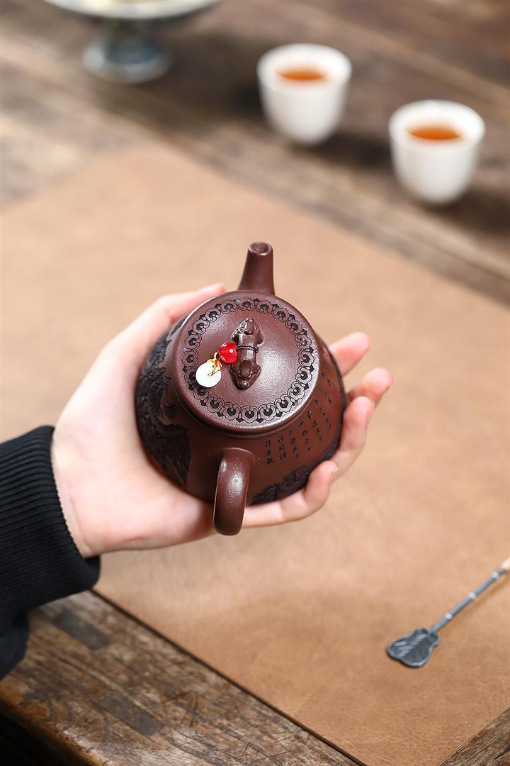 原礦大紅袍荷花龍蛋手工泥繪泡茶壺280cc POT3249