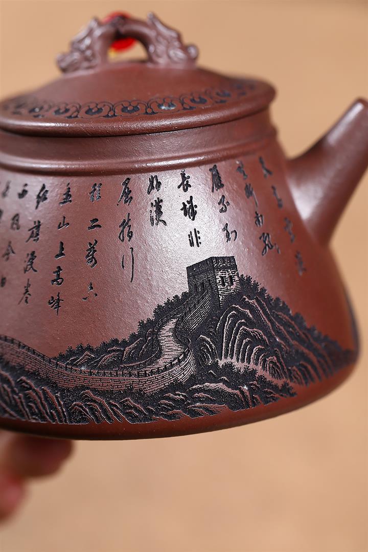 【泥料特點】砂土氣重,似淳實農民,日久使用,漸露鋒芒,養成變化,溫潤莊重。紫砂是壹種雙重氣孔結構的多孔性材質,氣孔微細,密度高。用紫砂壺沏茶,不失原味,且香不渙散,得茶之真香真味。紫砂使用越久,壺身色澤越發光亮照人,氣韻溫雅。紫砂壺長久使用器身會因撫摸擦拭,變得越發溫潤光澤。
