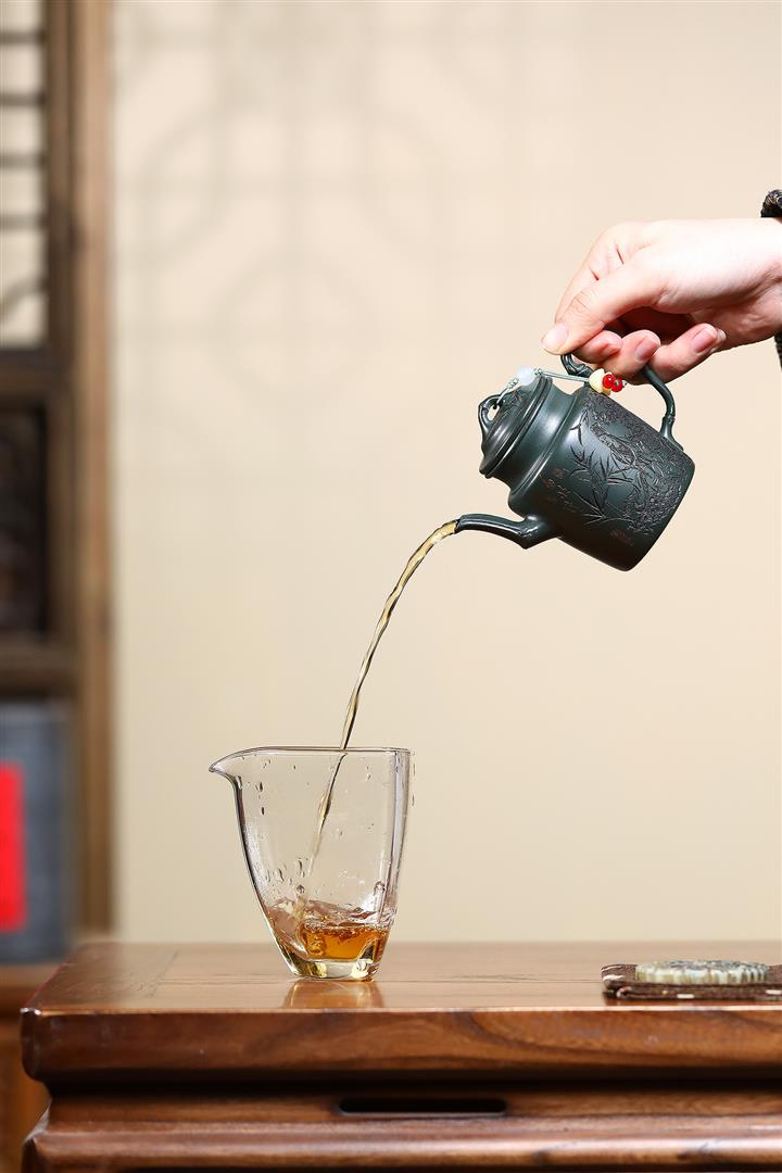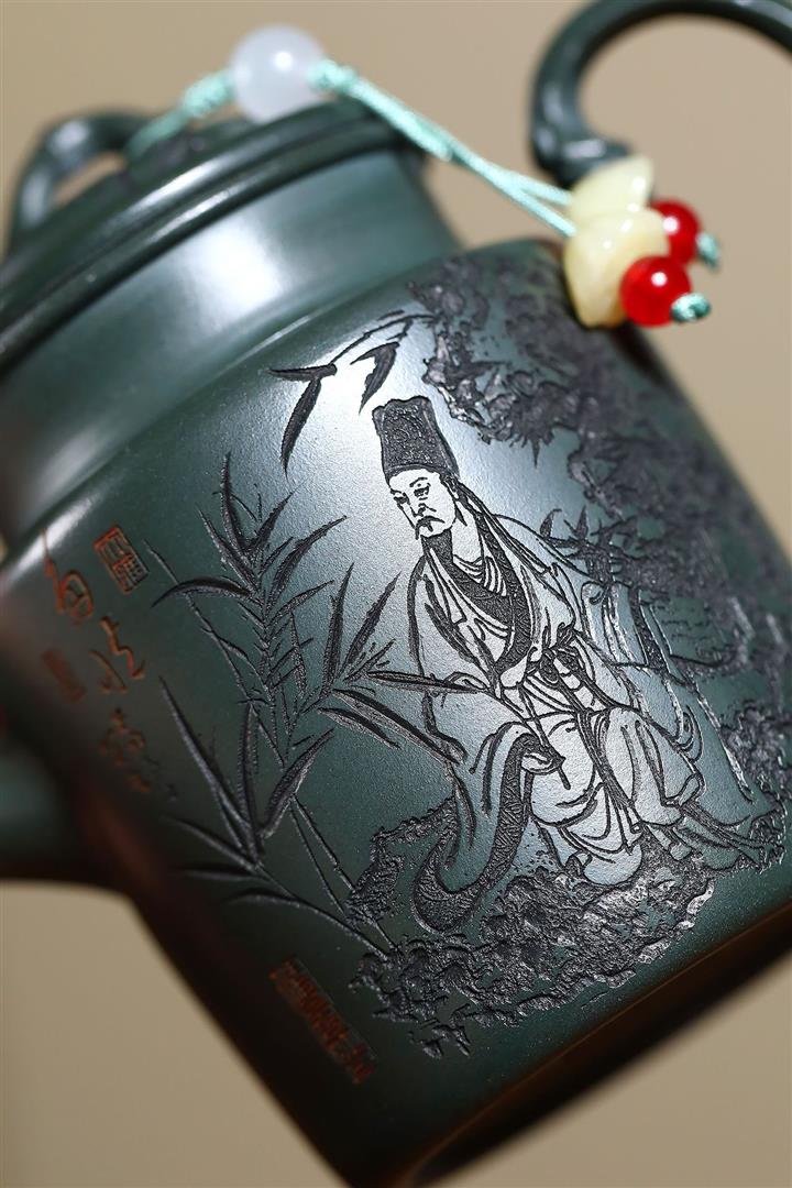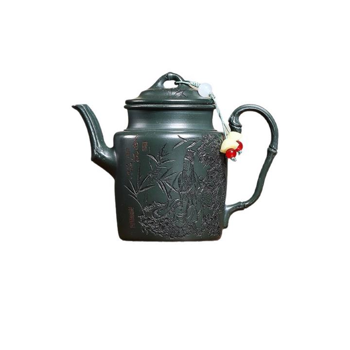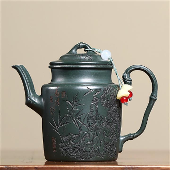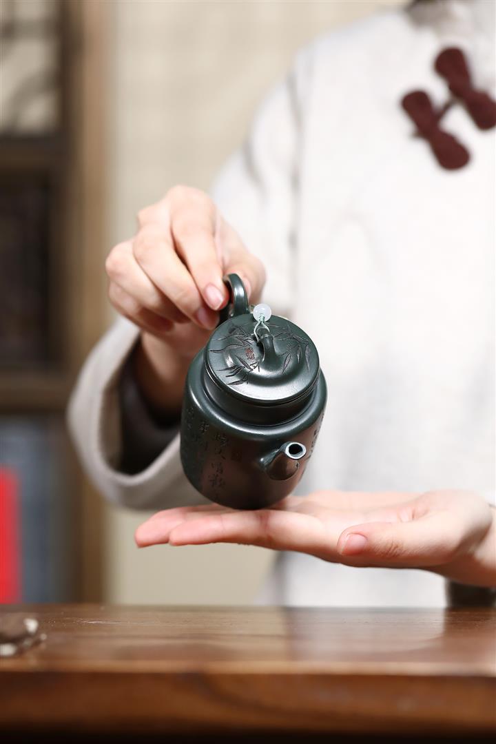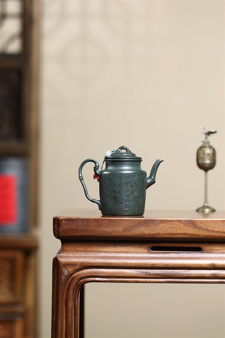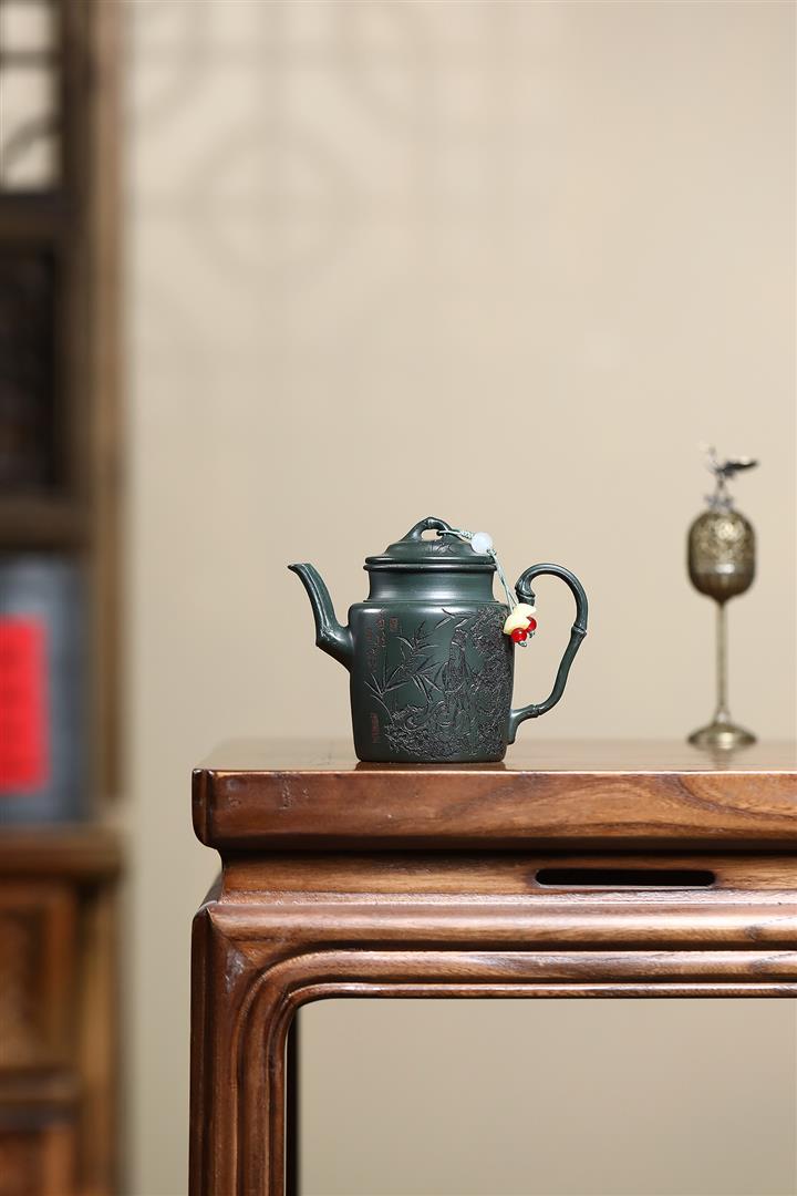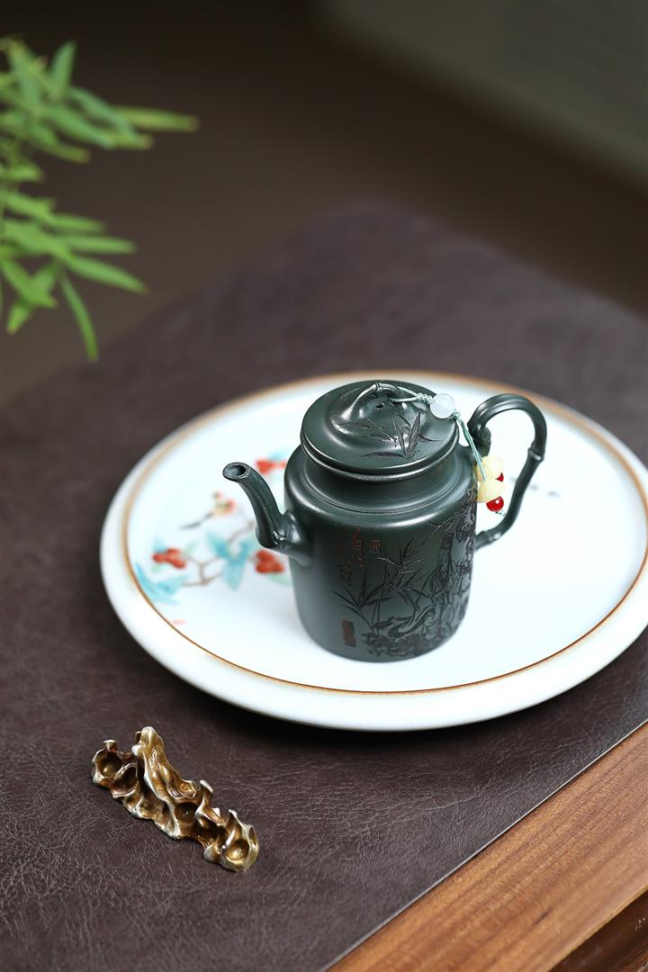 350cc原礦墨綠泥通身刻竹之清雅茶壺POT8302