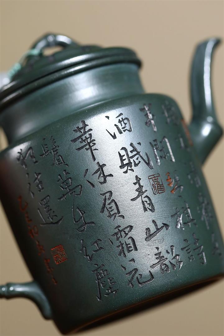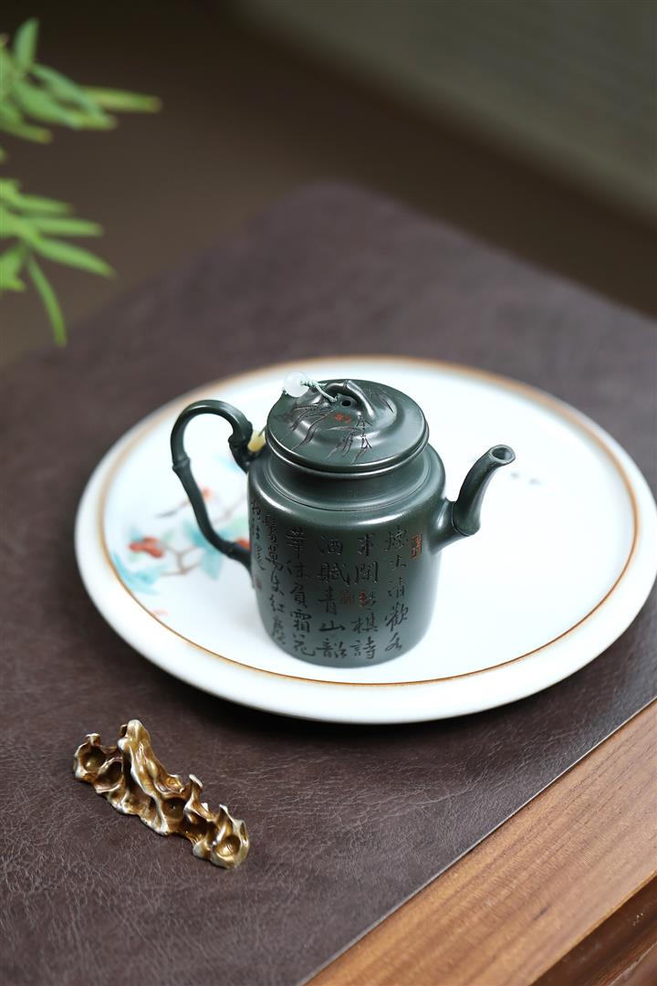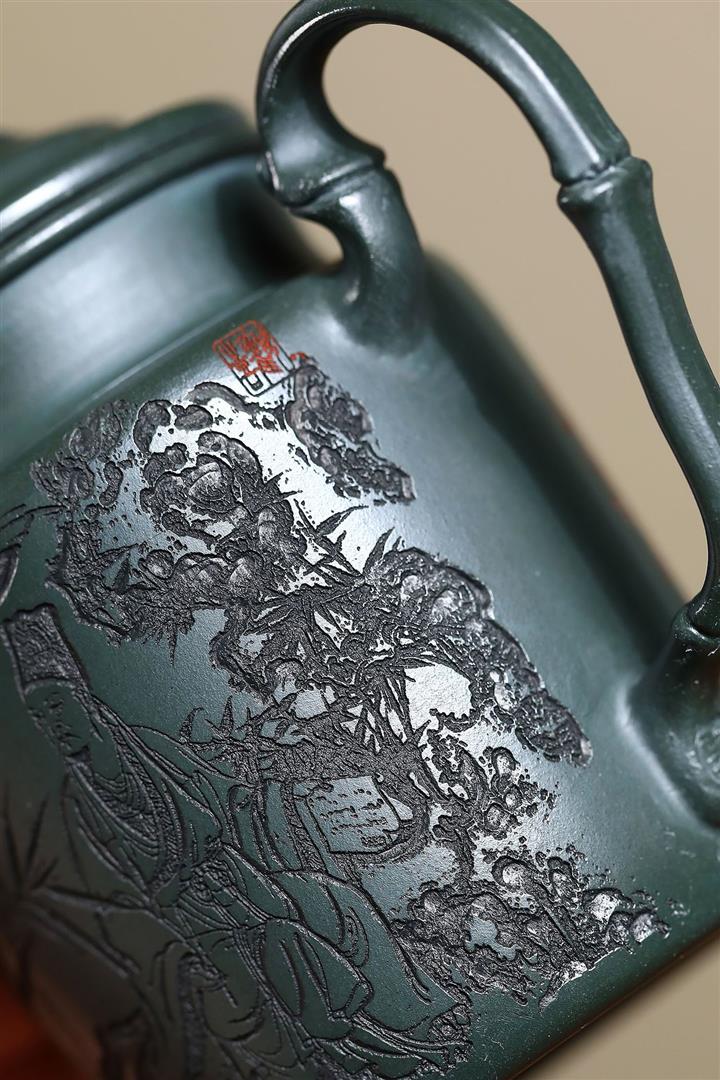 400cc原礦墨綠泥刻繪如意松趣茶壺POT8304